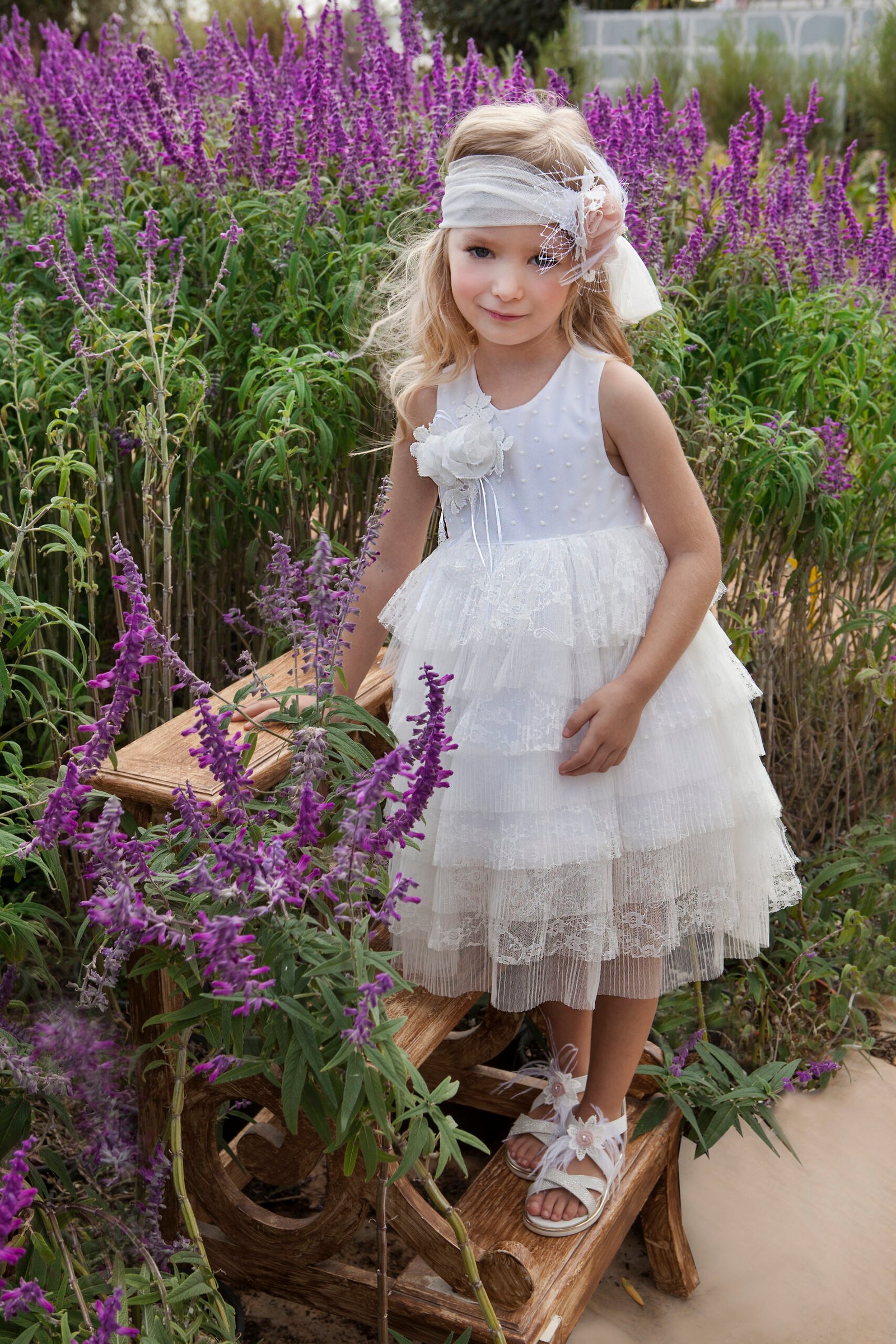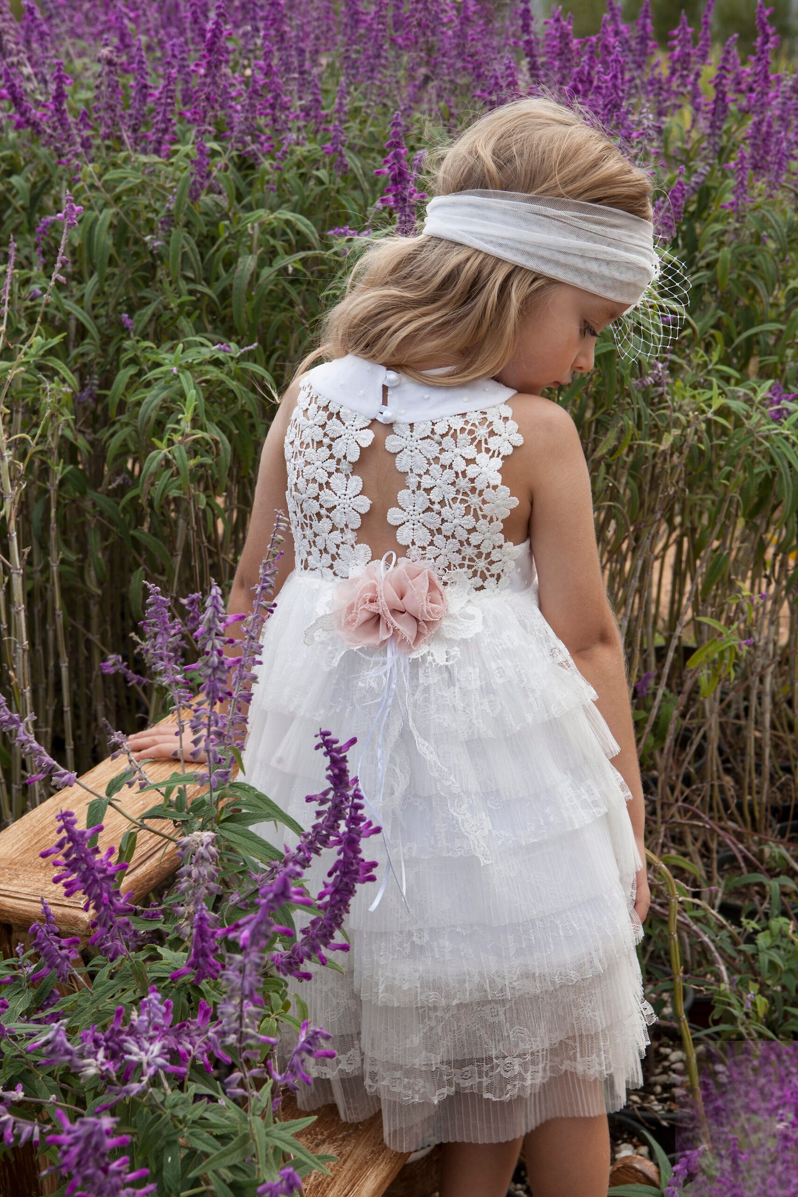 Ασορτί τούλινη κορδέλα με τα ίδια λουλούδια του φορέματος και κατ’ επιλογή μπαντάνα ή τουρμπάνι .