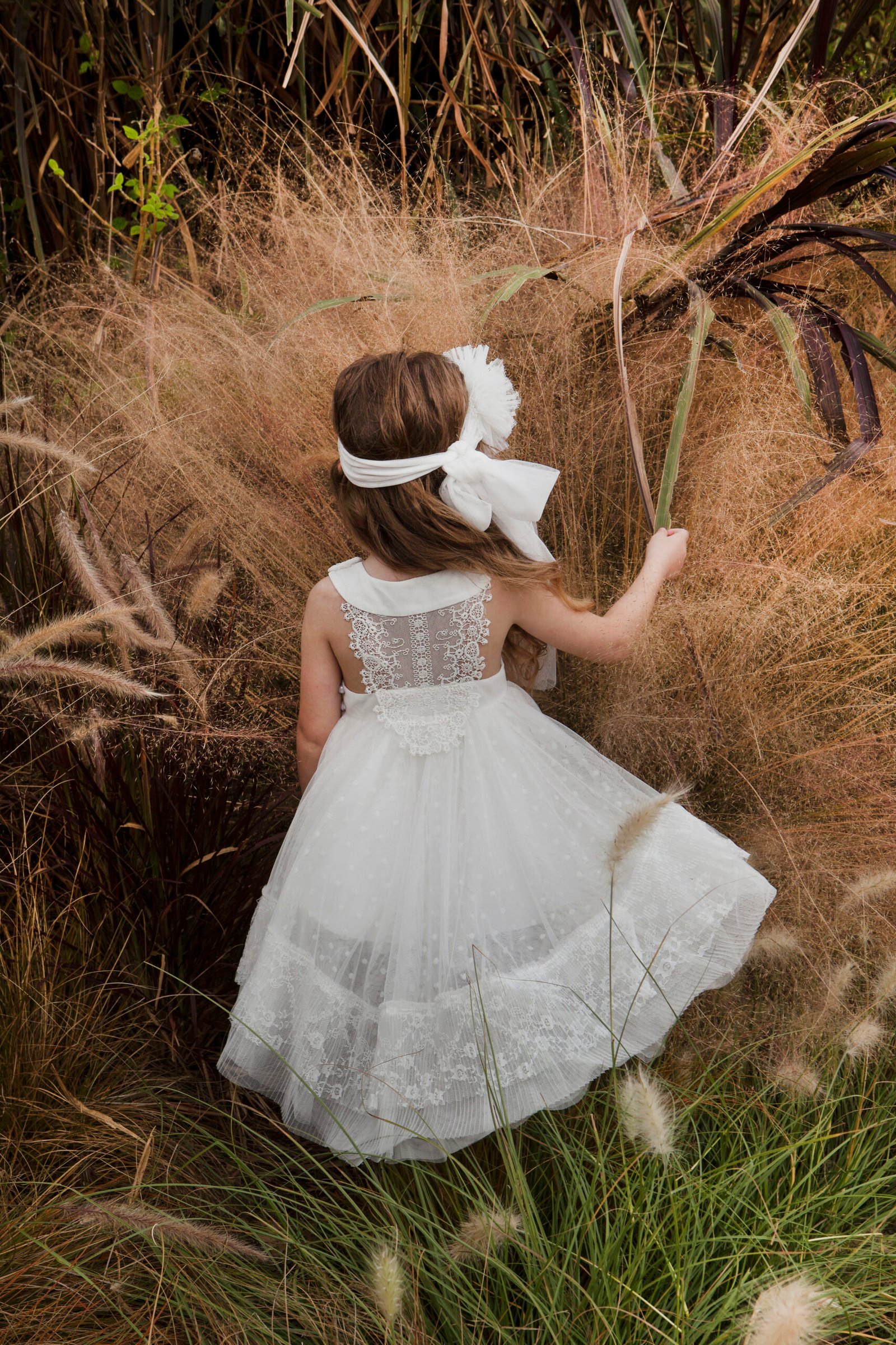 Φόρεμα εποχής από την συλλογή ariadne’s thread με δαντελένιο κορσάζ και επένδυση μαλακό βαμβακερό , μια εντυπωσιακή πλάτη από την ίδια ανάγλυφη δαντέλα , που καταλήγει πιο μακρύ στο πίσω μέρος . Εσωτερικά υπάρχει επένδυση από μαλακό βαμβακερό ύφασμα και τούλι με κεντητό πουά . Το βολάν της φούστας αποτελείται από δαντέλα και τούλι πλισέ που δημιουργεί μια αέρινη κίνηση.