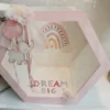 • Ξύλινο κουτί • Λαμπάδα βάπτισης • Λαδόπανο • 2 πετσέτες 1 σεντονάκι και εσώρουχα με σκουφάκι • 3 κεράκια για την κολυμπήθρα • Σαπουνάκι • Μπουκάλι για το λάδι