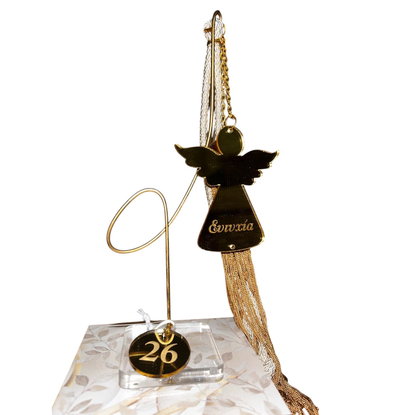 Διακοσμητική χιονόμπαλα μπάλα -Χαρά σε βάση με χρυσό στεφάνι/23.12.50
