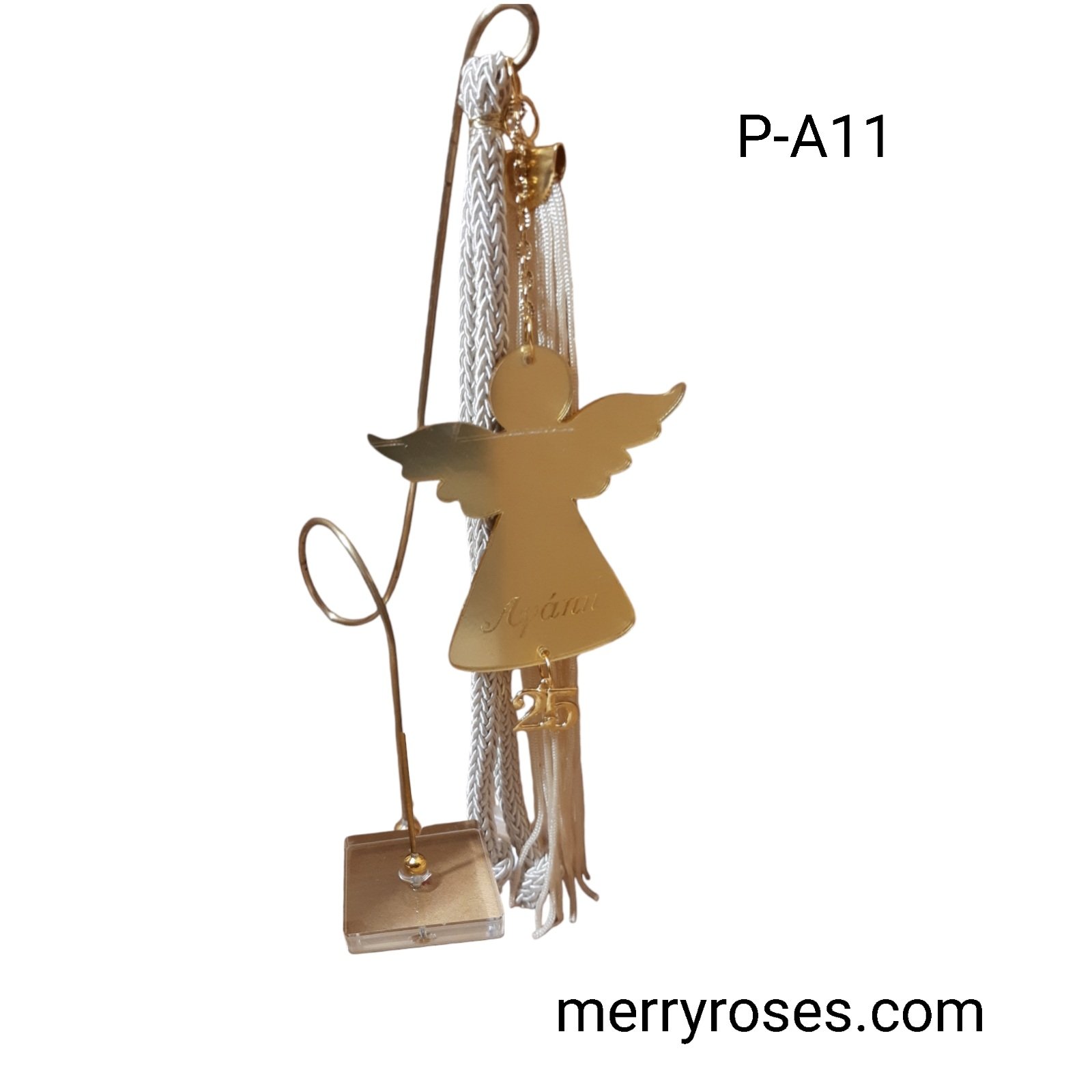 Γούρι αγγελάκι με ευχή αγάπη, σε βάση γυάλινη, μαζί με μέταλλο μπρούντζου.