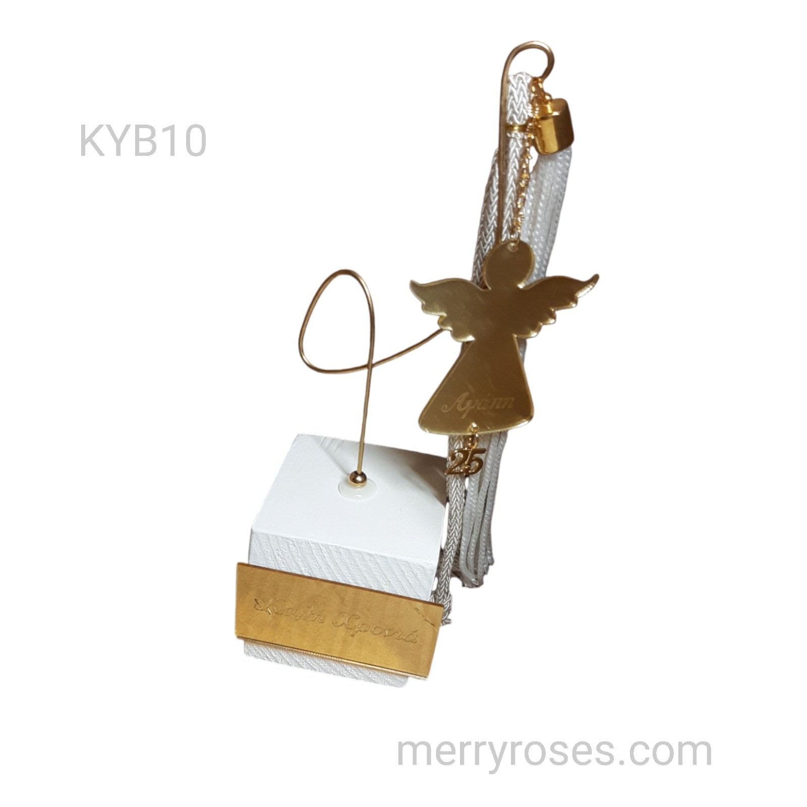 Γούρι Χαρά Αγγελάκι χρυσό 2025 ,σε ξύλινο κύβο 7×7 εκ με μπρούντζο .