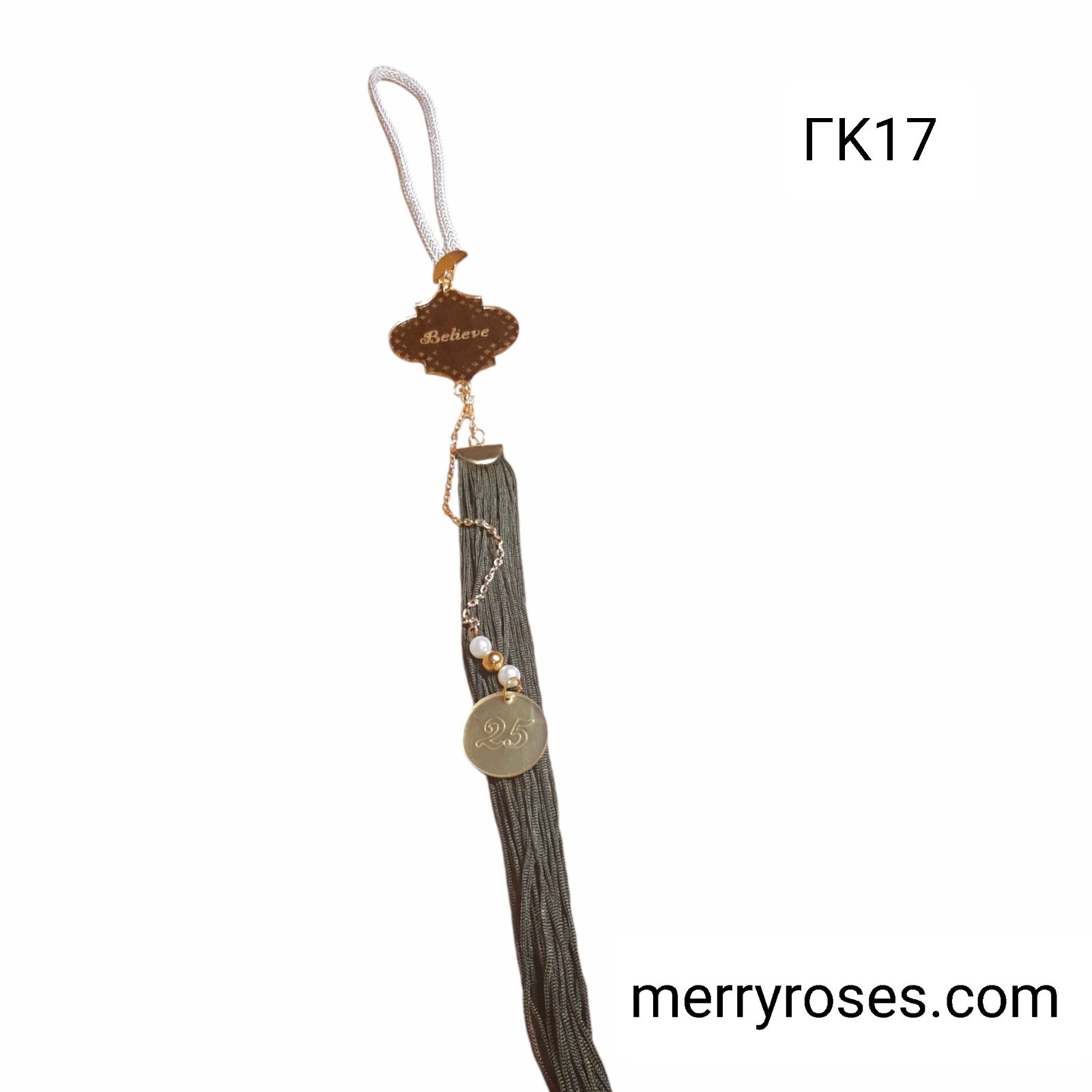 Κρεμαστό γούρι Believe 2025 (χρυσό plexi),με φούντα και κόσμημα.