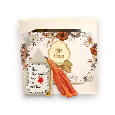 Συσκευασία: Κουτί δώρου με floral σχέδιο, παράθυρα προβολής και επιγραφή “Καλό Πάσχα”