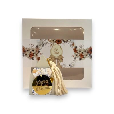Συσκευασία: Κουτί δώρου με floral σχέδιο, παράθυρα προβολής και επιγραφή “Καλό Πάσχα”