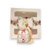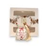 Διακόσμηση: Εκρού φούντα, χρυσή αλυσίδα με χάντρα και κουδουνάκι