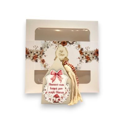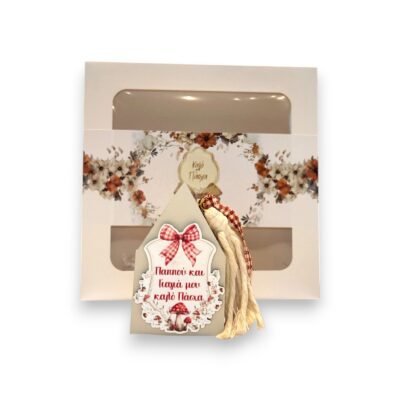 Συσκευασία: Κουτί δώρου με floral σχέδιο, παράθυρα προβολής και επιγραφή “Καλό Πάσχα”