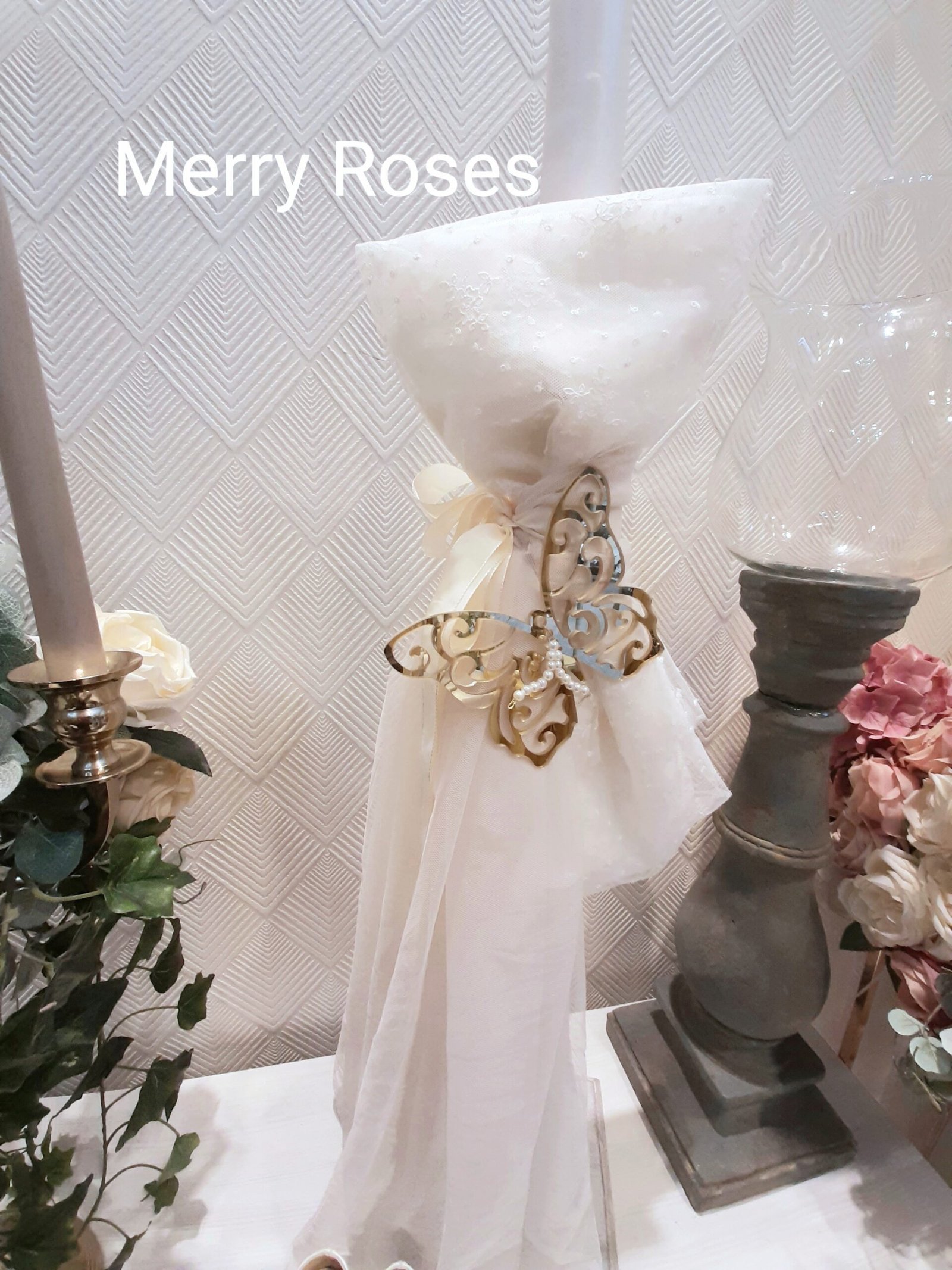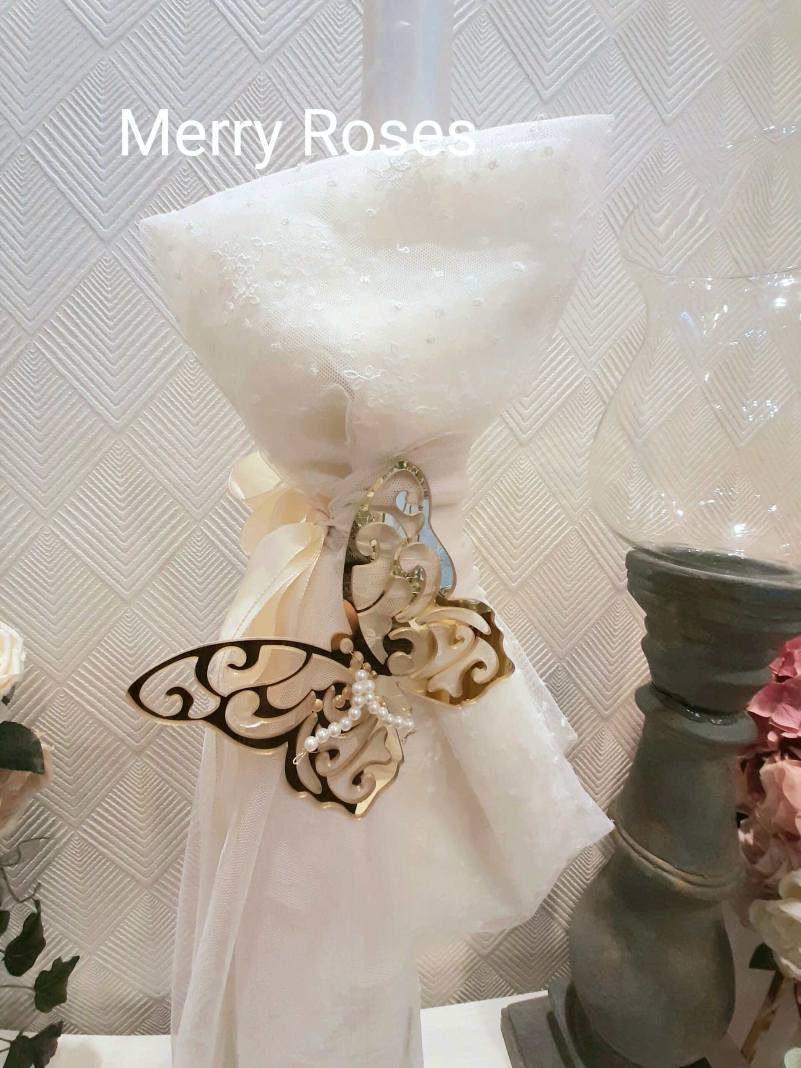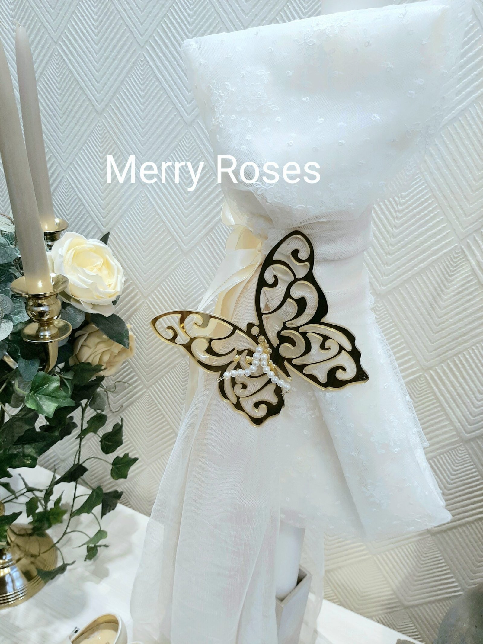 *Χρυσό Plexiglass Πεταλούδα με πέρλες