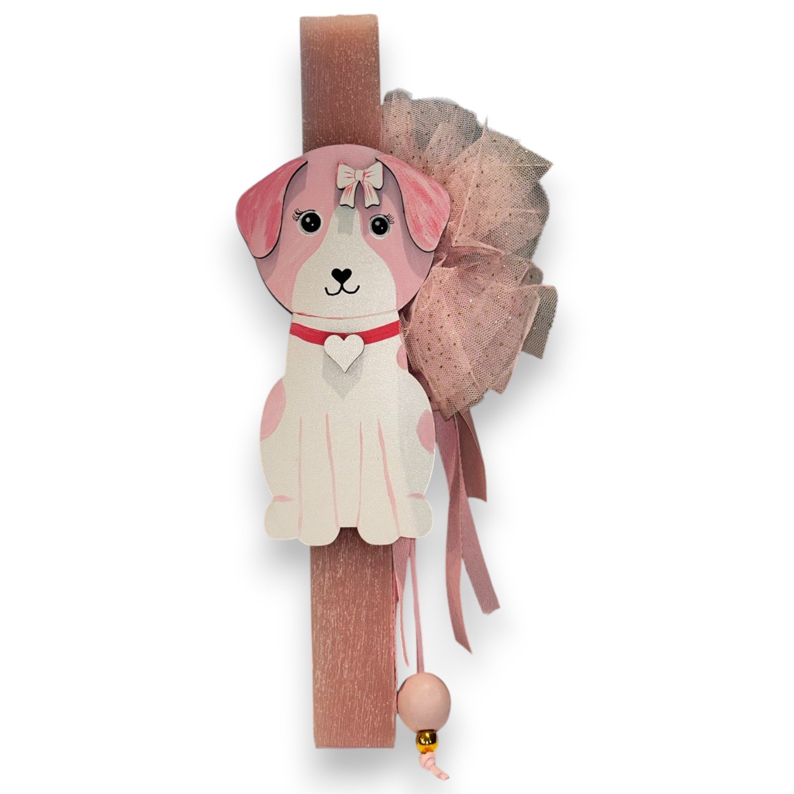 Διακόσμηση: Ροζ σκυλάκι φιγούρα, τούλι σε ροζ