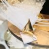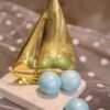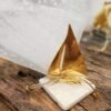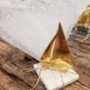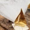 Μπομπονιέρα χρυσό μεταλλικό καραβάκι σε φυσική πέτρα