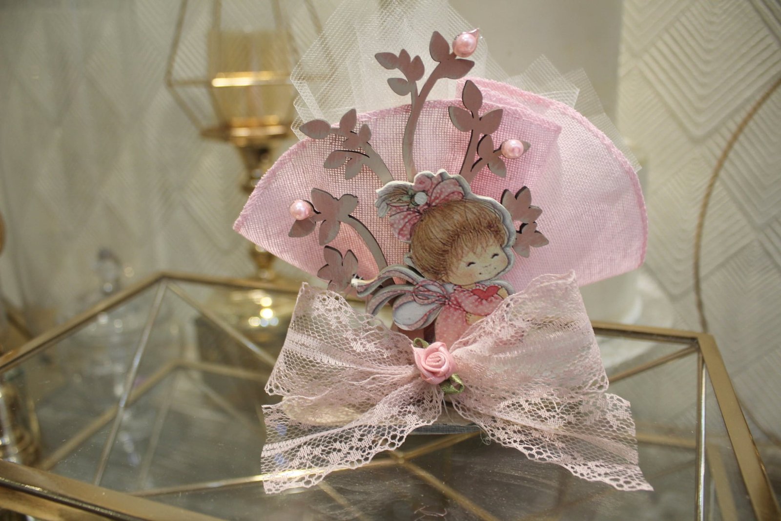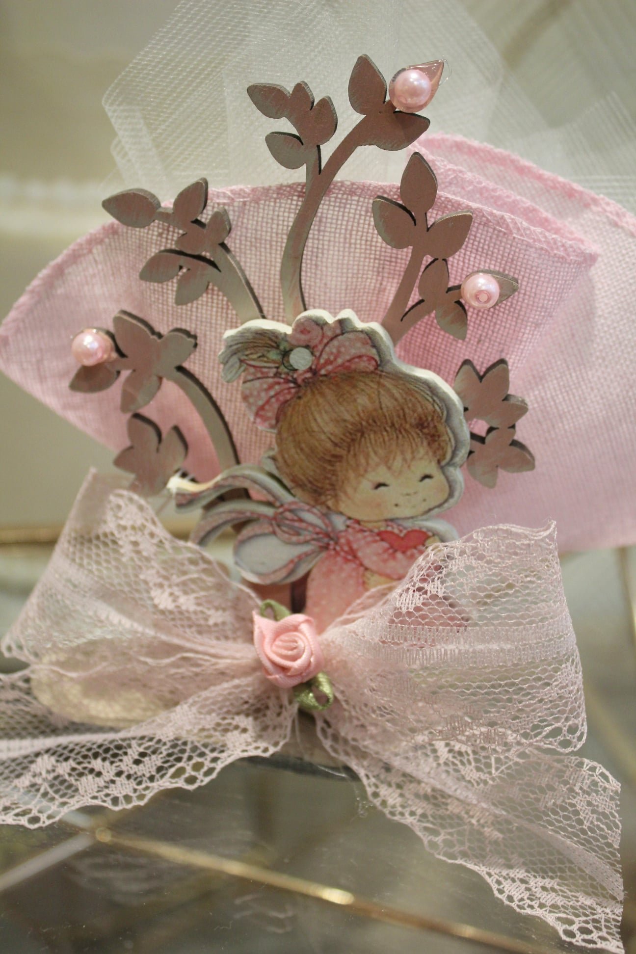 Μπομπονιέρα Βάπτισης στάντ δεντράκι με κοριτσάκι