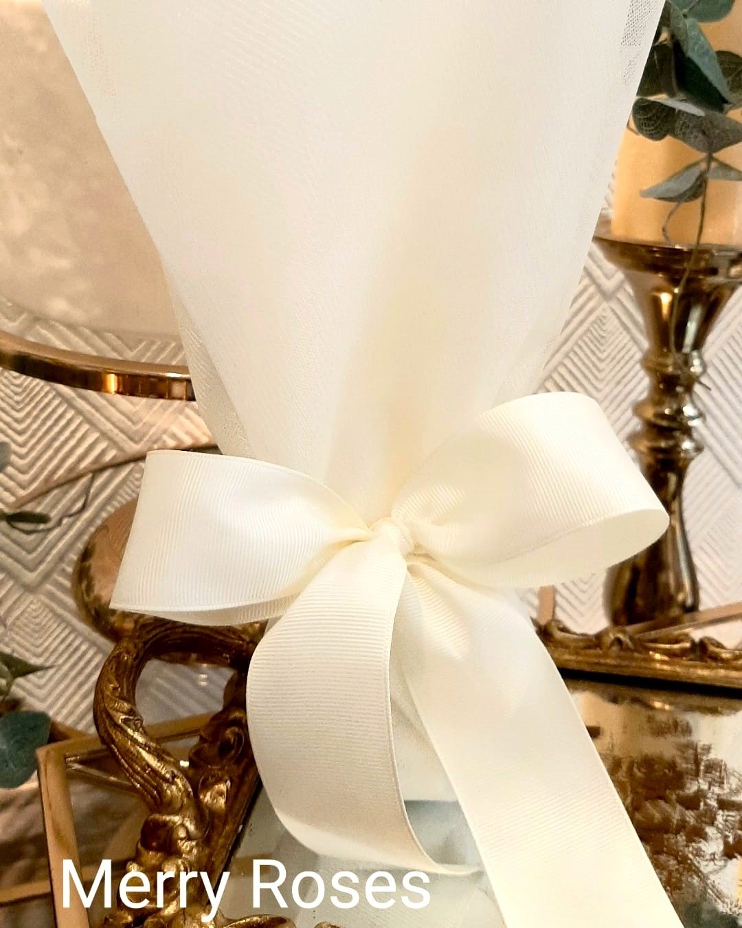 Τούλινη μπομπονιέρα γάμου 50*60 διάστασης με φιόγκο από γκρο κορδέλα.