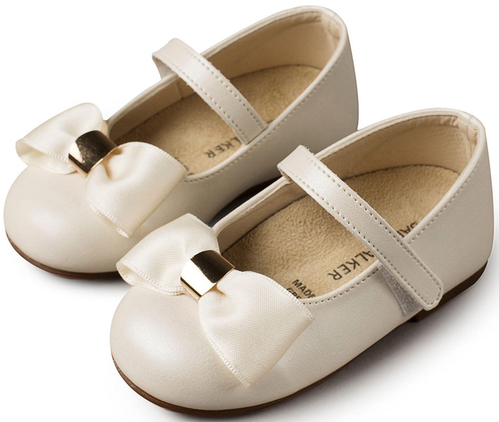 Βαπτιστικό παπουτσάκι ανατομικό της εταιρίας Babywalker για κορίτσι. Γοβάκι από ματ συνθετικό δέρμα, με σατέν φιόγκο και χρυσή λεπτομέρεια, σε χρώμα ΕΚΡΟΥ. Διαθέσιμο σε μέγεθος 19 έως και 26.