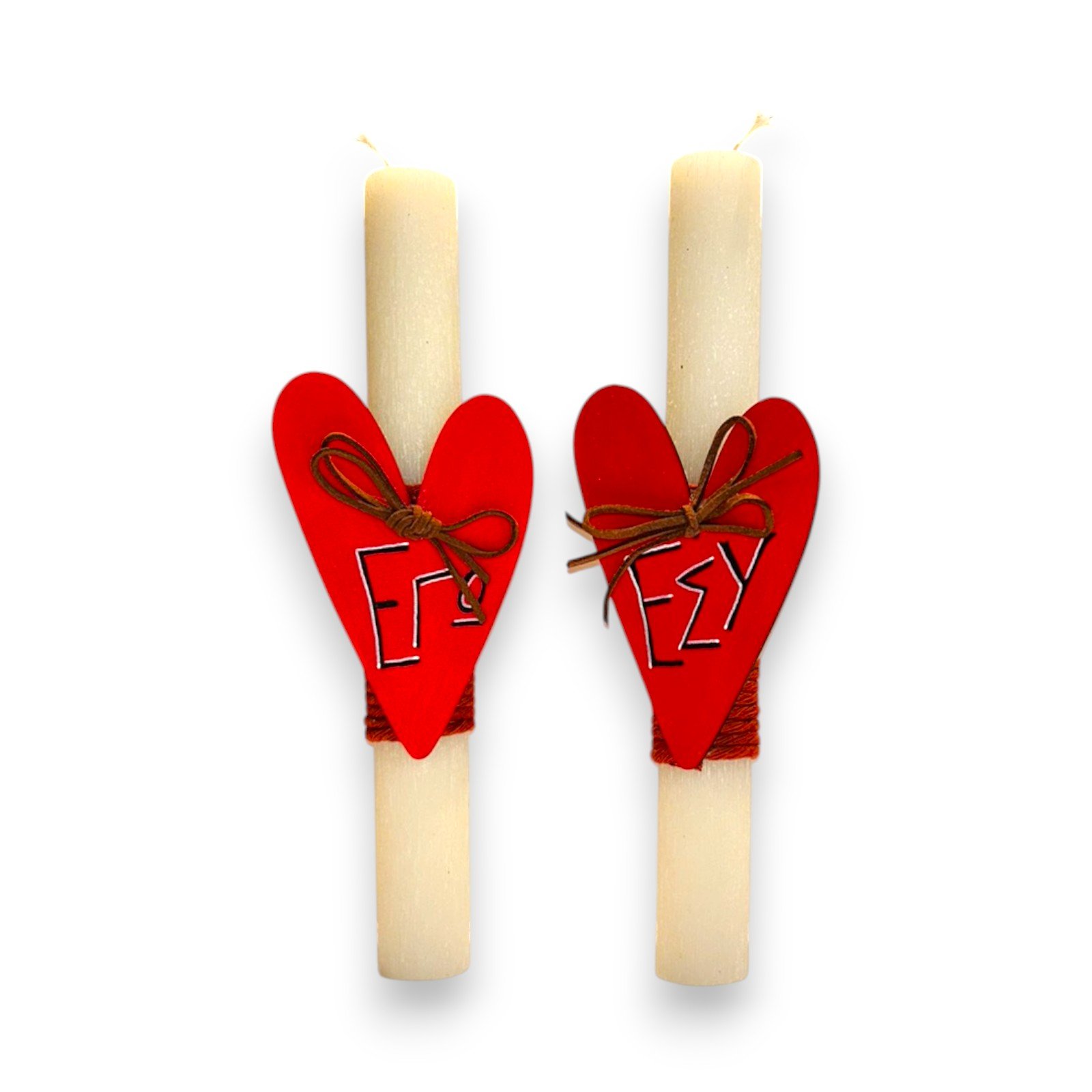“Πασχαλινές Λαμπάδες Ζευγαριού ‘ΕΓΩ – ΕΣΥ’ με Καρδιές – Σετ 2 Τεμαχίων”