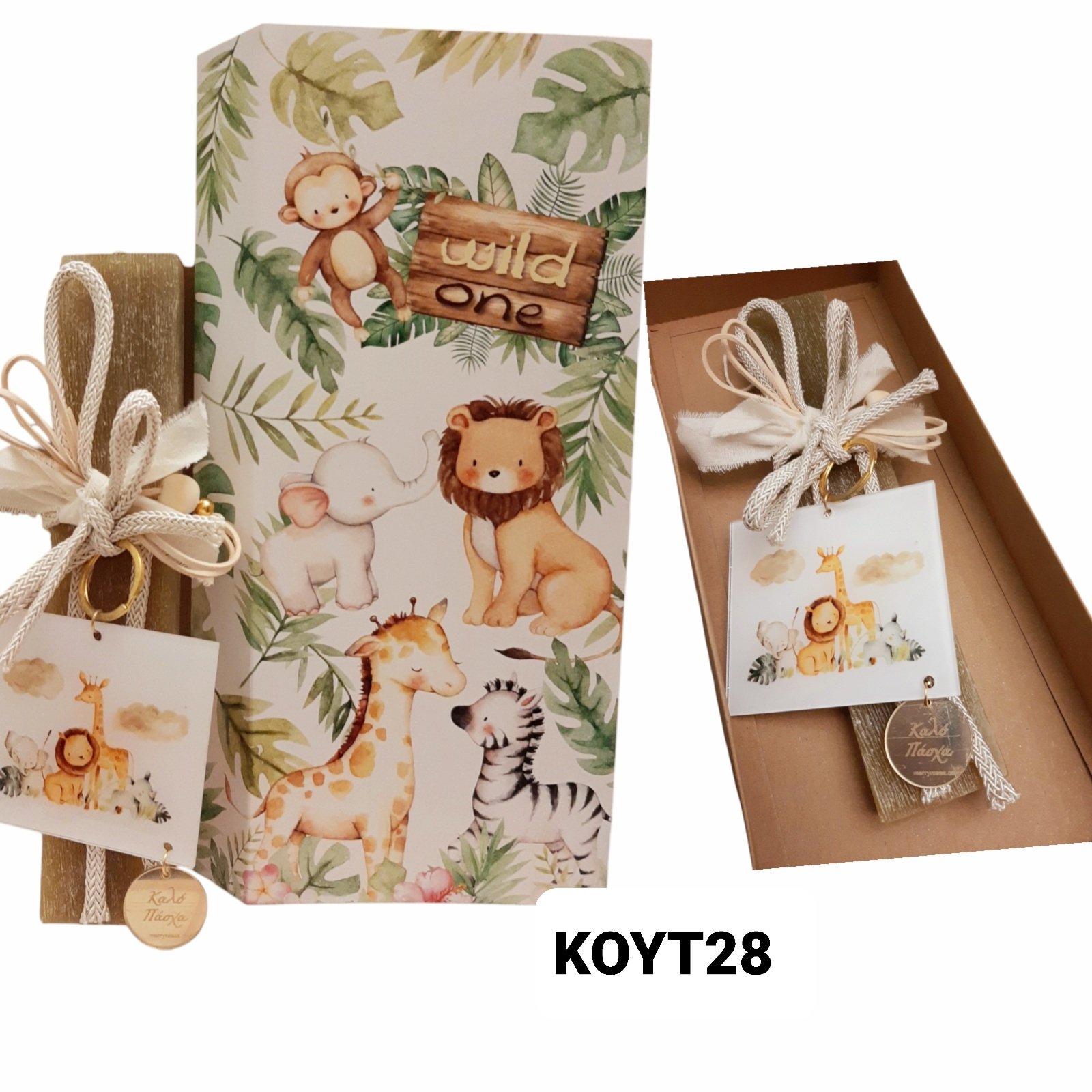 Πασχαλινό Σετ λαμπάδας με κουτί,ζωάκια της ζούγκλας/ΚΟΥΤ28/25.13.20