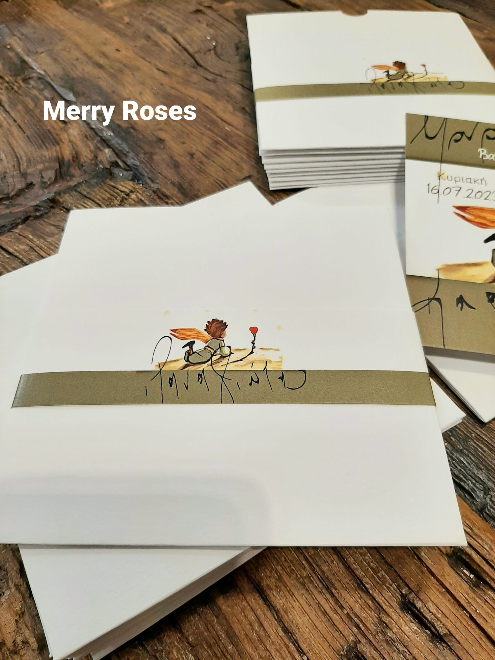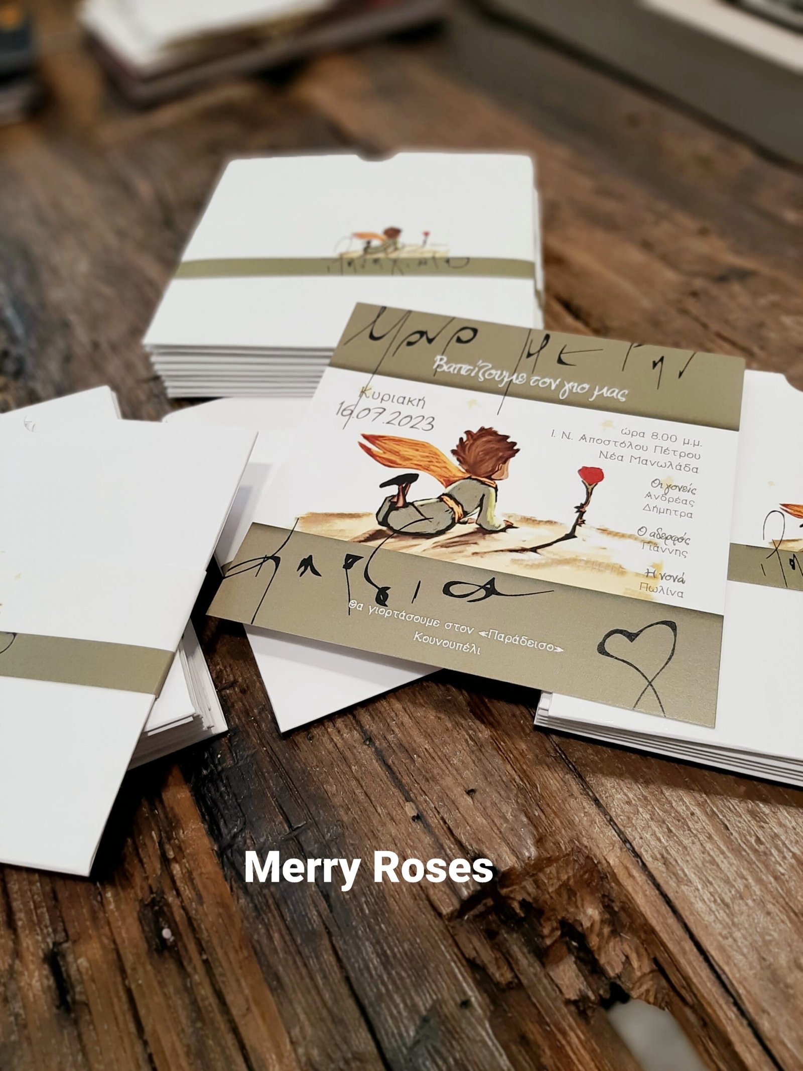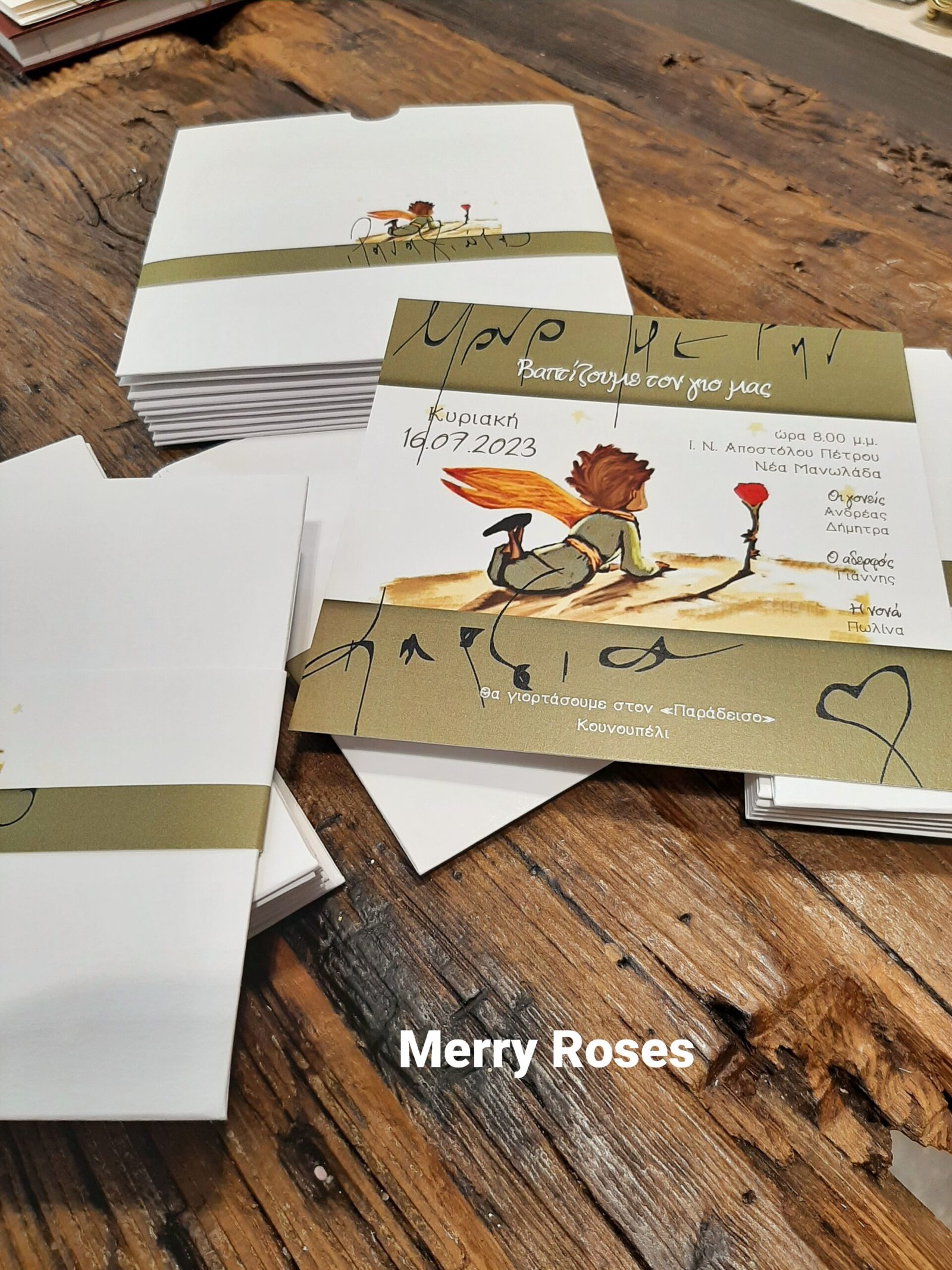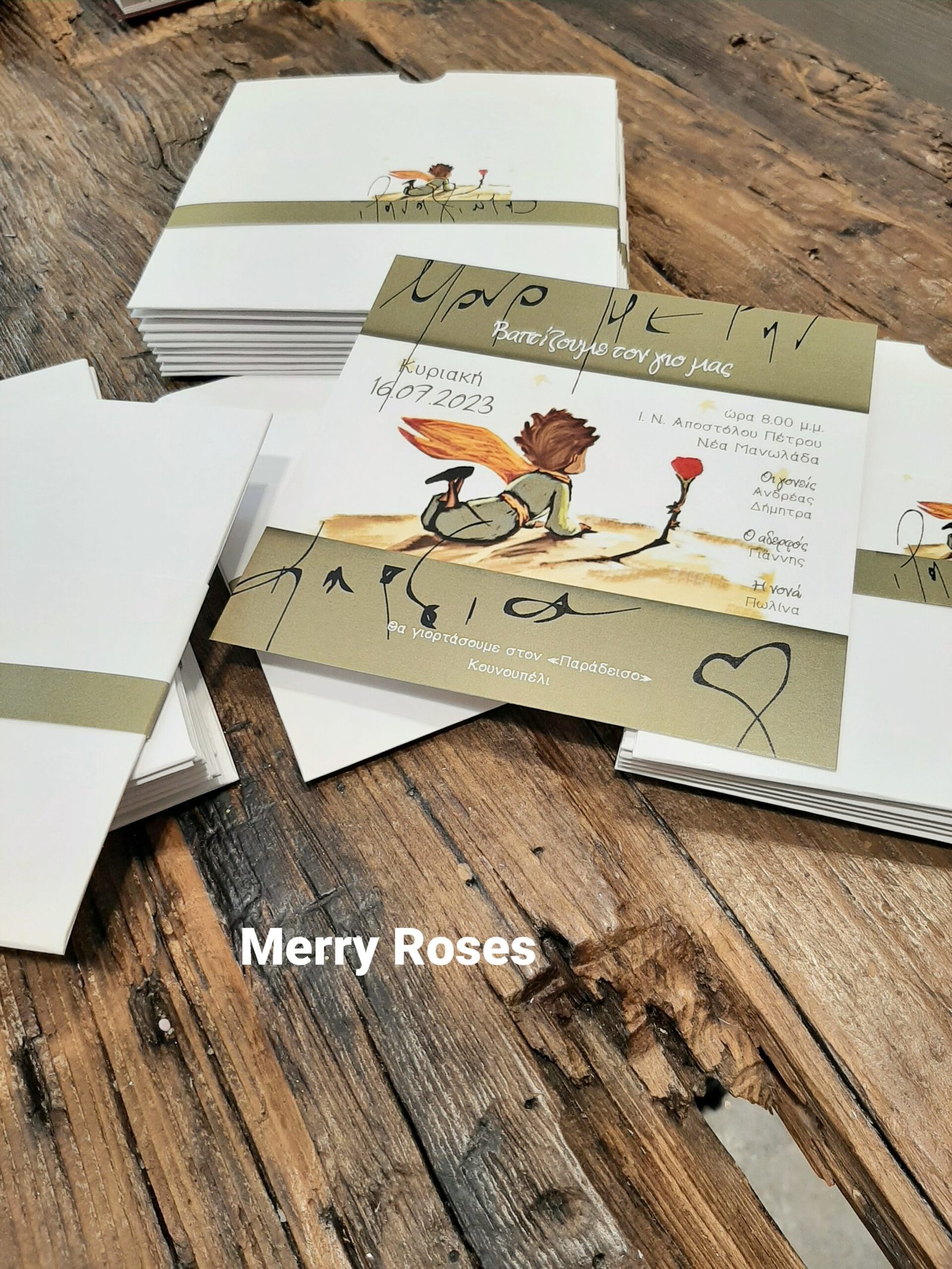 Τετράγωνο σετ προσκλητηρίου ,καρτα φάκελος με φάσα με τον μικρό πρίγκιπα.