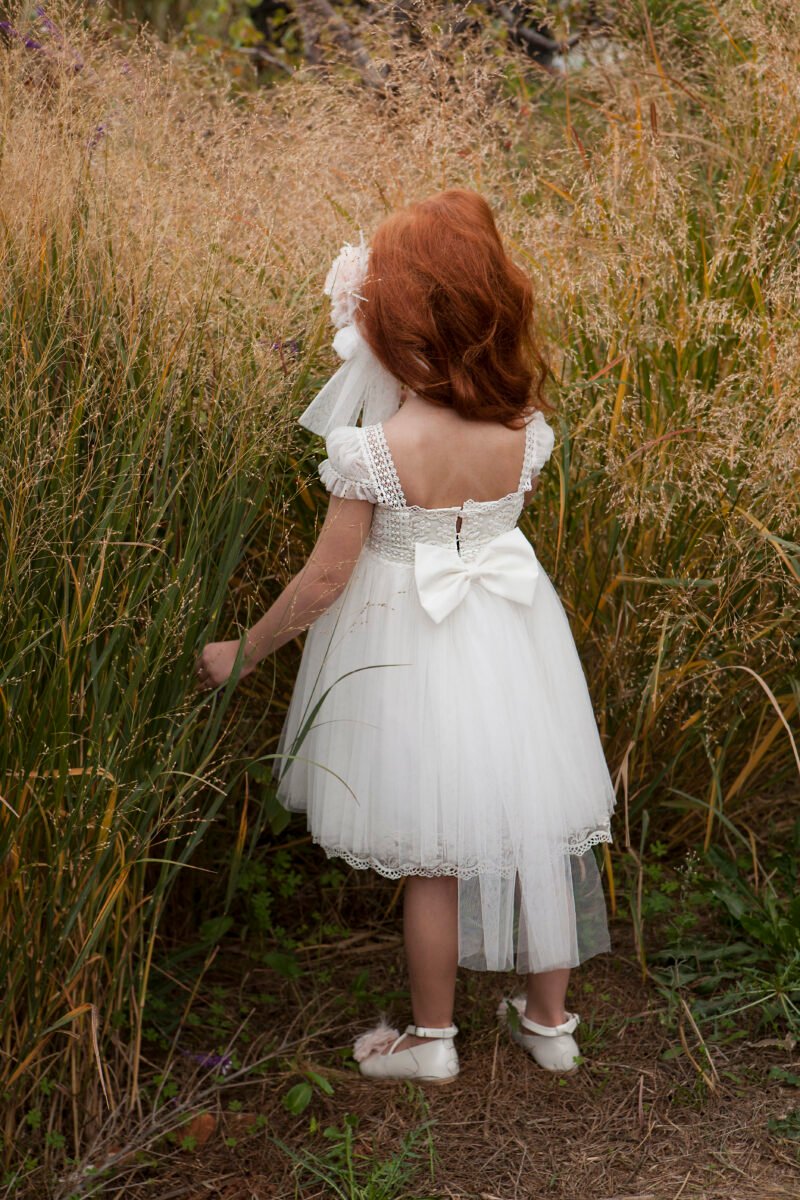 Ρομαντικό φόρεμα βάπτισης Baby Bloom σε ιβουάρ απόχρωση με ιδιαίτερη ανάγλυφη δαντέλα στην μέση και στο τελείωμα . Χειροποίητο λουλούδι που στολίζει τη μέση του φορέματος και μεγάλος φιόγκος στο πίσω μέρος . Εσωτερική επένδυση από μαλακό βαμβακερό ύφασμα. Ασορτί κορδέλα με το ίδιο λουλούδι του φορέματος και κατ’ επιλογή μπαντάνα ή τουρμπάνι .
