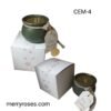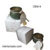 Κερί αρωματική παραφίνη 100 γρ σε τσιμεντένιο δοχείο,χριστουγεννιάτικη κάρτα με γούρι 25, και κουτί συσκευασίας δώρου.