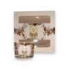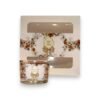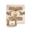 – Διακόσμηση: Floral ετικέτα με επιγραφή “Καλό Πάσχα”, σατέν κορδέλα σε εκρού/σαμπανιζί, ξύλινο διακοσμητικό φτερό