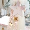 Λαμπάδα Βάπτισης αστέρι με το όνομα του παιδιου,μαζί με χρυσά αστεράκια και πον-πον.