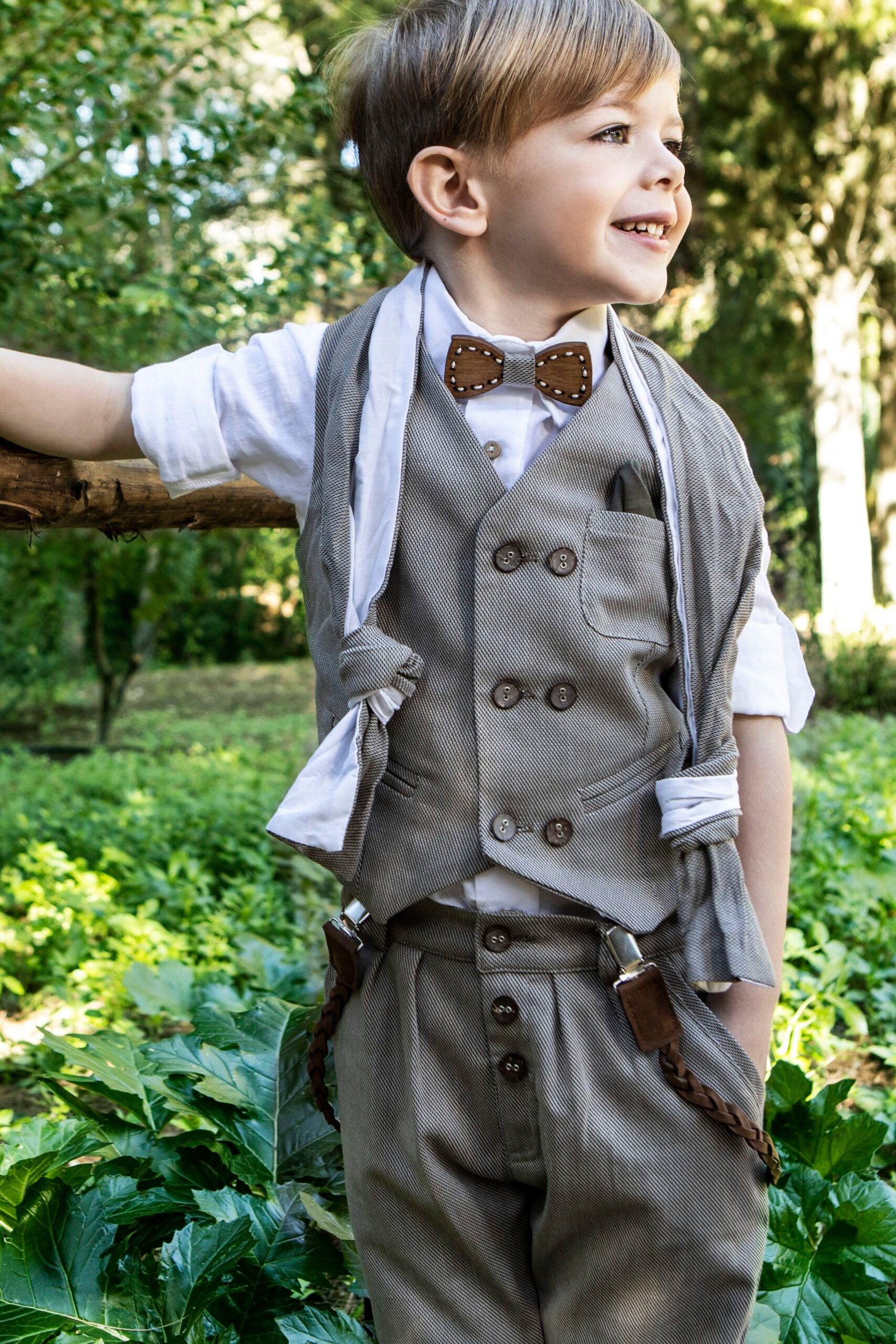 Ένας chic συνδυασμός σε αποχρώσεις του χακί , σε ένα σετ βάπτισης 7 τεμαχίων που περιλαμβάνει γιλέκο τουίντ χακί με ιδιο παντελόνι με πιέτες ,το πουκάμισο είναι λευκό λινό. Στο σετ περιλαμβάνονται επίσης τιράντες, ξύλινο παπιγιόν ,δίχρωμο φουλάρι και ψάθινο καπέλο ή μπερές.