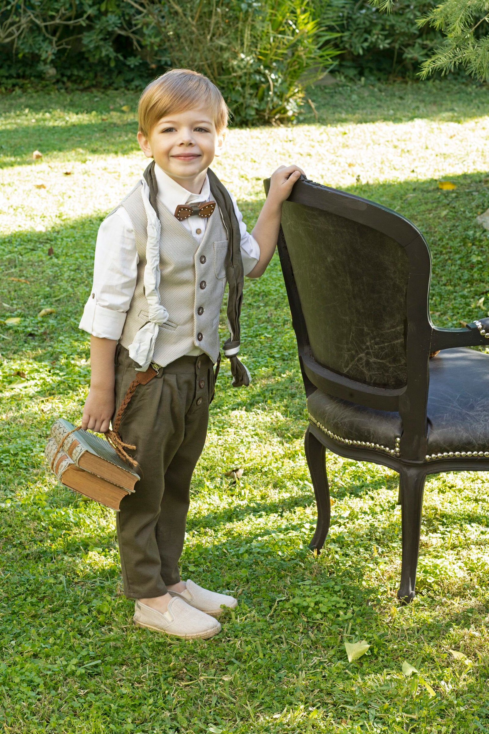 Ένας κλασικός συνδυασμός χρωμάτων σε ένα βαπτιστικό σετ, αποτελούμενο από 7 τεμάχια σε αποχρώσεις που κυριαρχεί το μπέζ και το χακί. Το πουκάμισο σε off white απόχρωση ,γιλέκο μπέζ και παντελόνι λινό χακί .