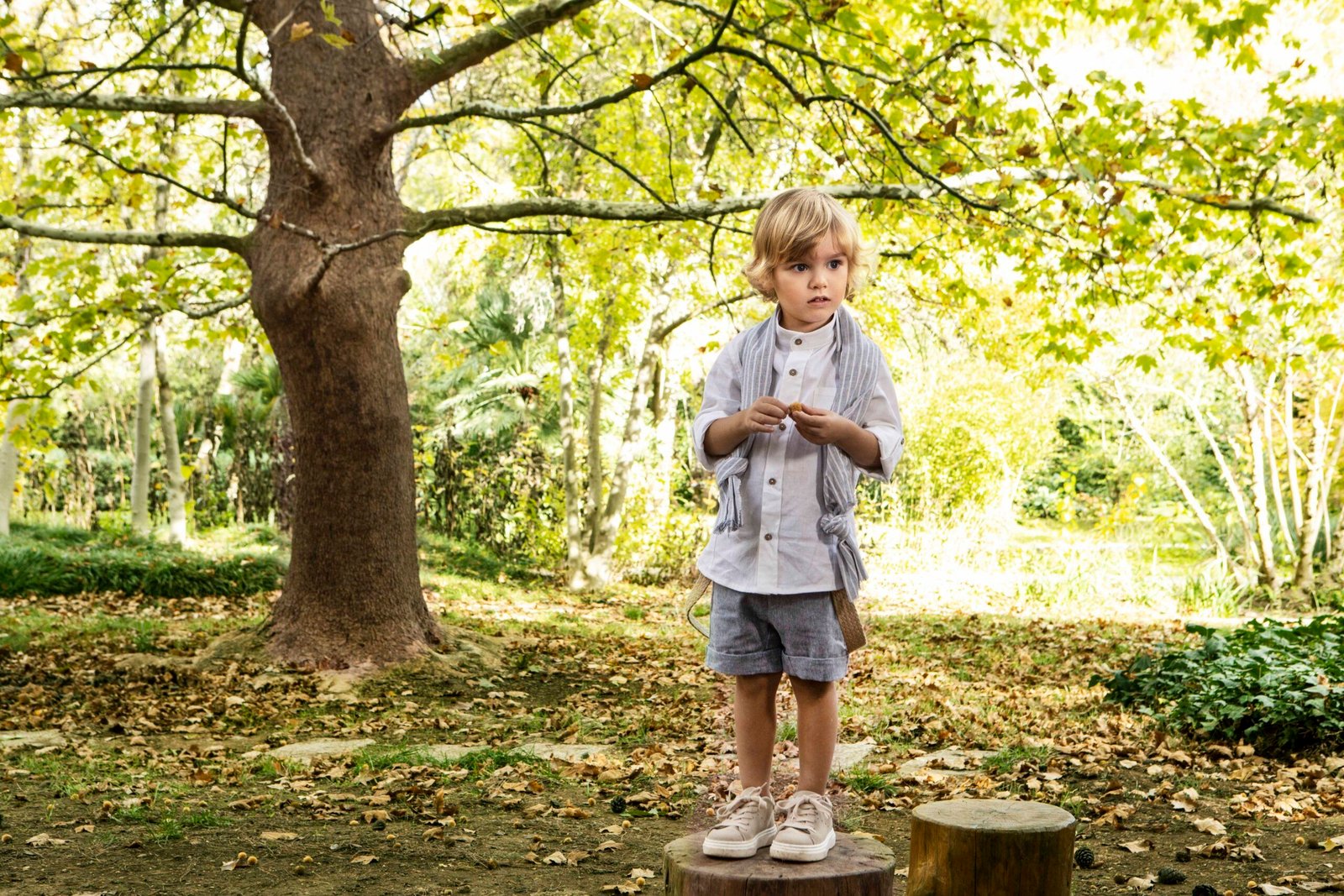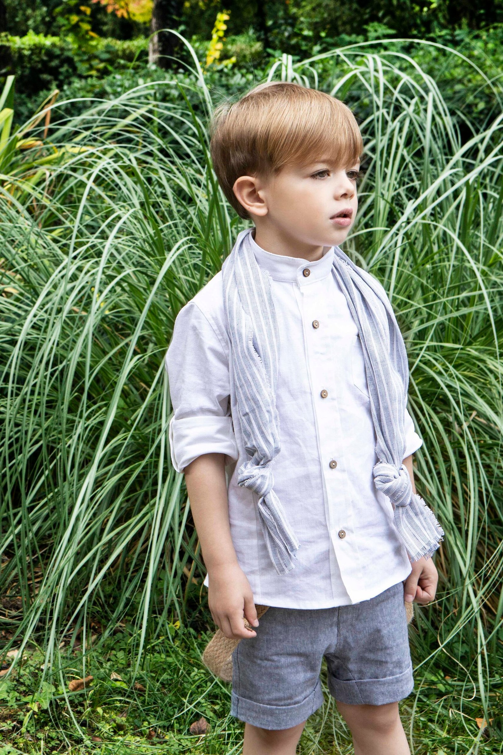 Ένα άκρως καλοκαιρίνο σετ αποτελούμενο από 5 τεμάχια. Περιλαμβάνει βερμουδάκι τουιντ indigo blue , πουκάμισο λευκό λινό , δίχρωμο φουλάρι , τιράντες και ψάθινο καπέλο ή μπερέ .