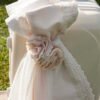 Κ21.05 τρόλεϊ με πλούσιο στολισμό σε εκρού – σομόν απόχρωση με ιδιαίτερη ανάγλυφη δανδελα, πλούσια τούλια και χειροποίητα λουλούδια, ασορτί λαμπάδα με τον ίδιο στολισμό , σετ λαδιού (3 κεράκια, μπουκαλάκι λαδιού, σαπουνάκι) . Κάθε πακέτο βάπτισης μπορεί να στολιστεί με οποιοδήποτε φόρεμα της συλλογής μας.