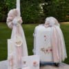 .Κ21.06 τρόλεϊ με στολισμό από πλούσια τούλια σε απόχρωση κυκλάμινο, χειροποίητη σύνθεση λουλουδιών και ζωγραφική στο χέρι με προτεινόμενο θέμα κύκνο, ασορτί λαμπάδα με τον ίδιο στολισμό και ξύλινο καδράκι ζωγραφισμένο στο χέρι, σετ λαδιού (3 κεράκια, μπουκαλάκι λαδιού, σαπουνάκι). Κάθε πακέτο βάπτισης μπορεί να στολιστεί με οποιοδήποτε φόρεμα της συλλογής μας.