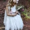 Εντυπωσιακό φόρεμα υψηλής ραπτικής ,που το χαρακτηρίζει η ιδιαίτερη πλάτη με Χ δέσιμο που εφαρμόζει τέλεια στο παιδάκι και τα βολάν στο κάτω μέρος του φορέματος , εσωτερική επένδυση από μαλακό βαμβακερό ύφασμα . Κορσάζ από ιδιαίτερη βαμβακερή δανδέλα και χειροποίητο λουλούδι στη μέση του φορέματος όπως και στο πίσω μέρος.