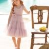 Εντυπωσιακό φόρεμα Baby Bloom ,υψηλής ραπτικής που το χαρακτηρίζει η ιδιαίτερη πλάτη Χ από χειροποίητες πλεξίδες που εφαρμόζει τέλεια στο παιδάκι, μπούστο από glitter τούλι , και πλούσια φούστα με βολάν με εσωτερική επένδυση από μαλακό βαμβακερό ύφασμα .Τη μέση του φορέματος στολίζει χειροποίητη πλεξίδα με εντυπωσιακό λουλούδι στο πλάι όπως και στην πλάτη του φορέματος.