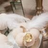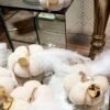 Μίνι βελούδινη κολοκύθα λευκή με πέρλα ,swarovski,χρυσό αλυσιδάκι ,χρυσό plexi 24 και χρυσό κοτσάνι.