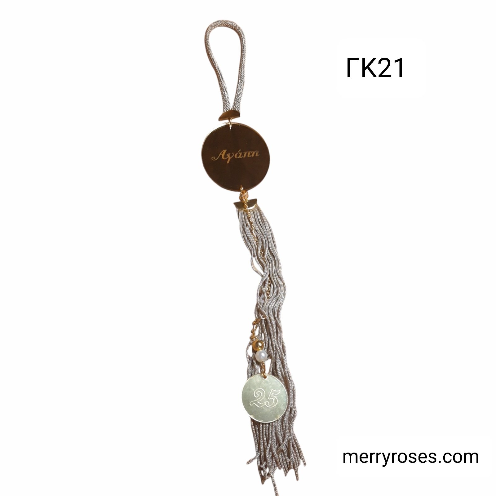 Κρεμαστό γούρι Αγάπη ,2025 (χρυσό plexi),με φούντα και κόσμημα.