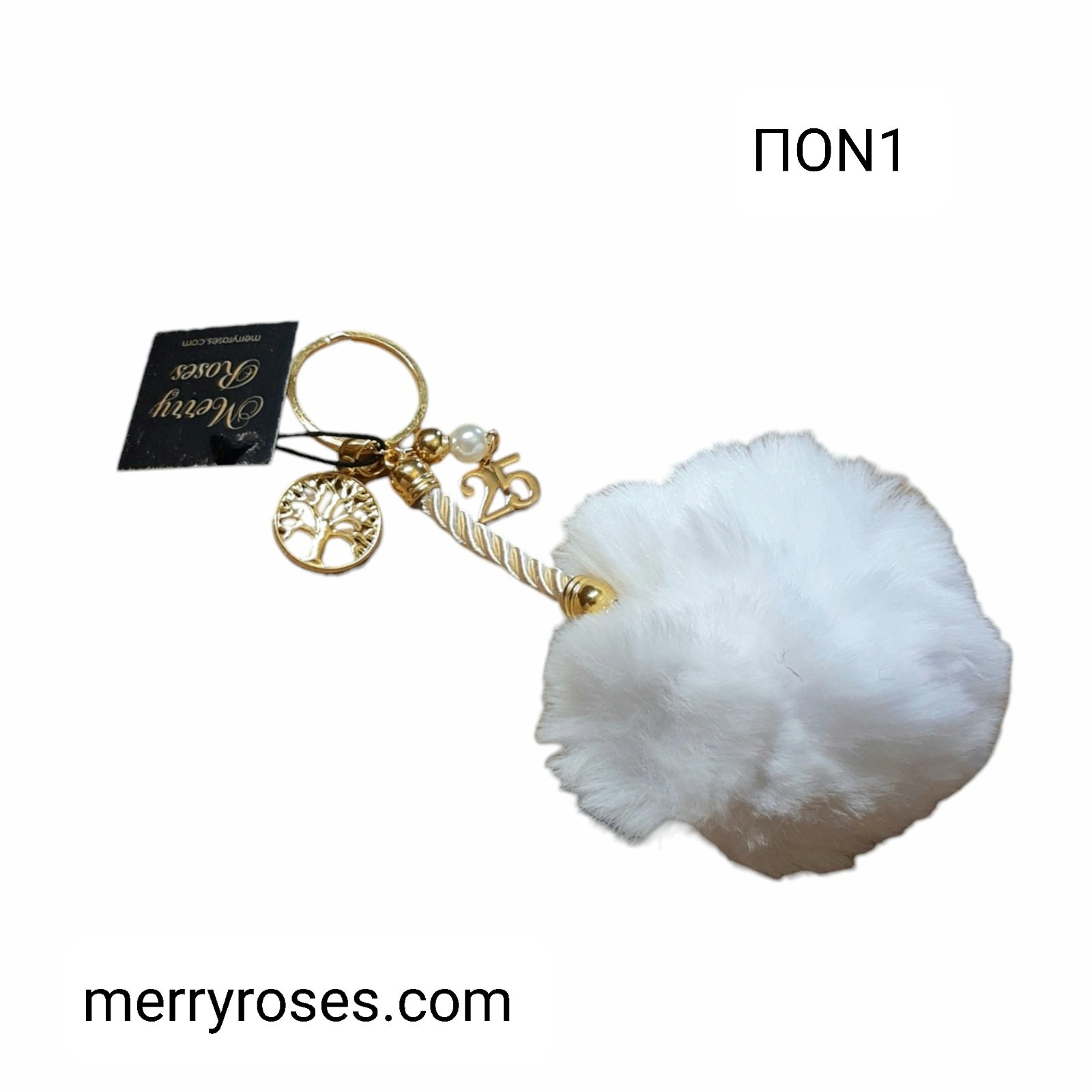 Γούρι Μπρελόκ με γούνα λευκή ΠΟΝ1/24.3.50