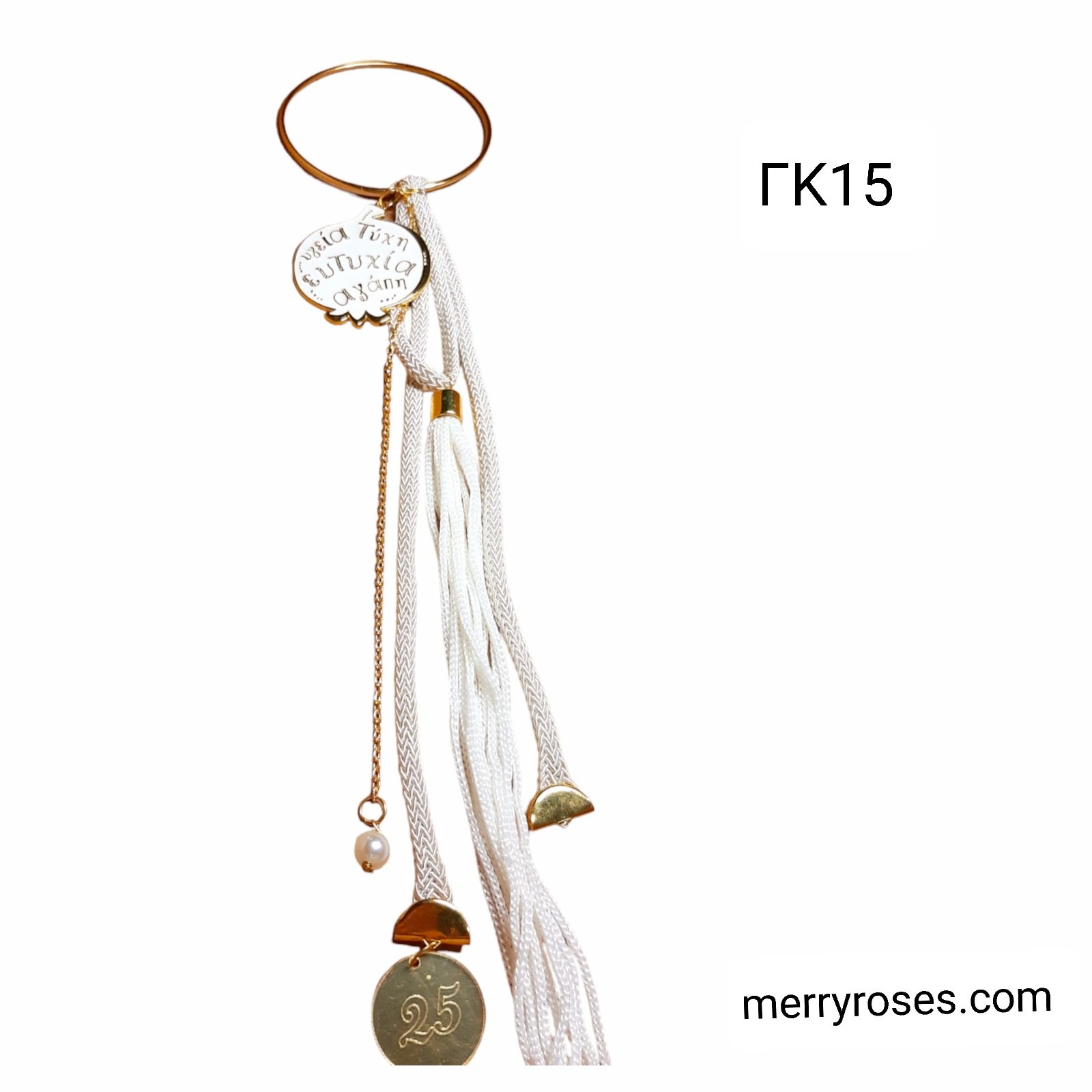 Κρεμαστό γούρι μεταλλικό ρόδι ευχών με σμάλτο,φούντα λευκή και κόσμημα.