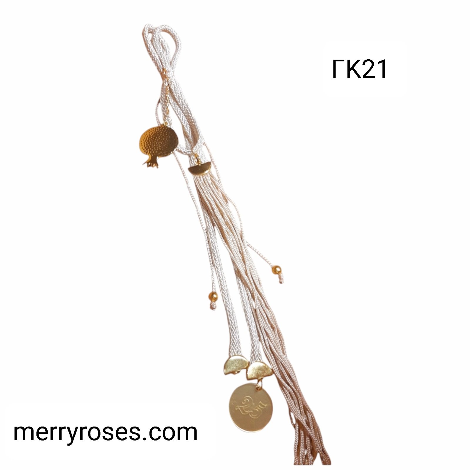 Κρεμαστό γούρι ρόδι χρυσό σφυρήλατο,με φούντα και κόσμημα.