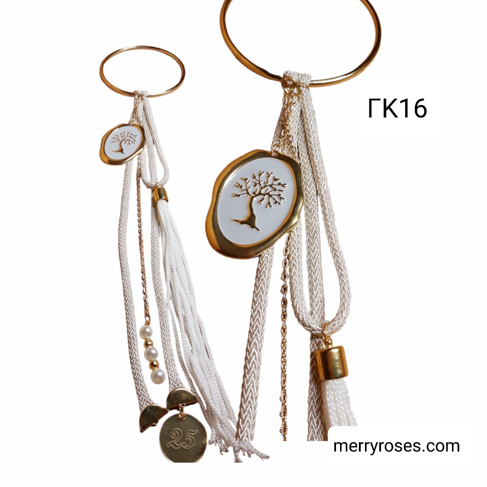 Κρεμαστό γούρι μεταλλικό το δέντρο ζωής με σμάλτο,φούντα λευκή και κόσμημα.