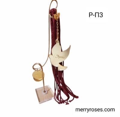 Γούρι χρυσό plexi περιστέρι με ευχή Υγεία, σε βάση γυάλινη, μαζί με μέταλλο μπρούντζου.