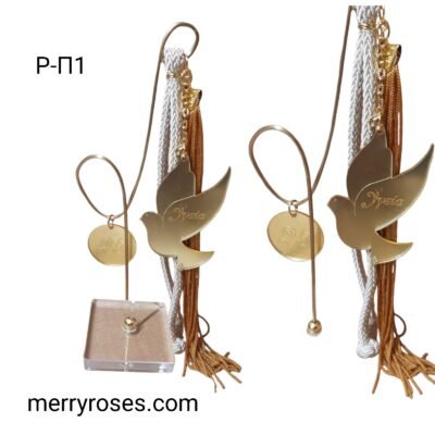Γούρι χρυσό plexi περιστέρι με ευχή Υγεία, σε βάση γυάλινη, μαζί με μέταλλο μπρούντζου.