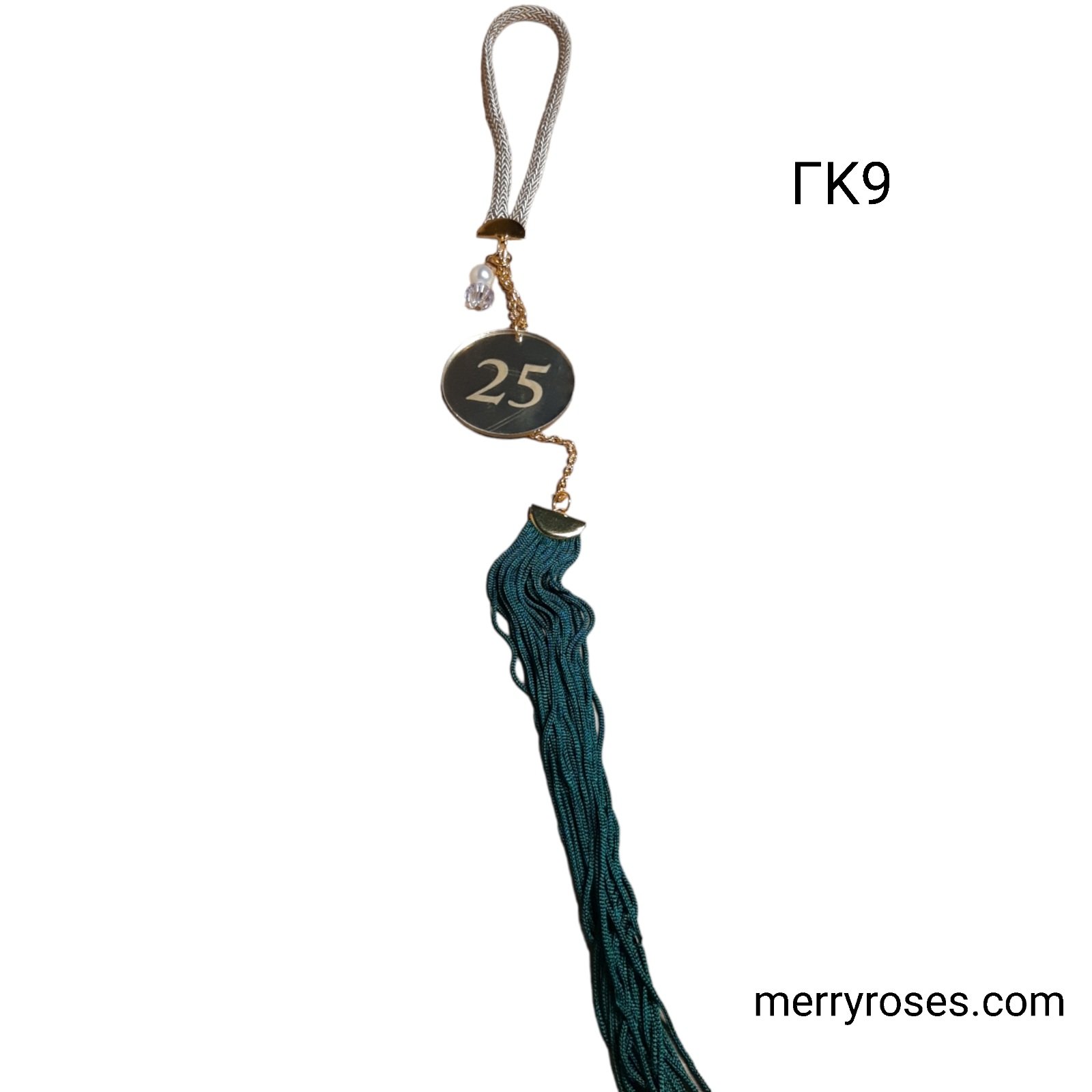 Κρεμαστό γούρι 2925(χρυσό plexi),με φούντα σμαραγδί και κόσμημα.