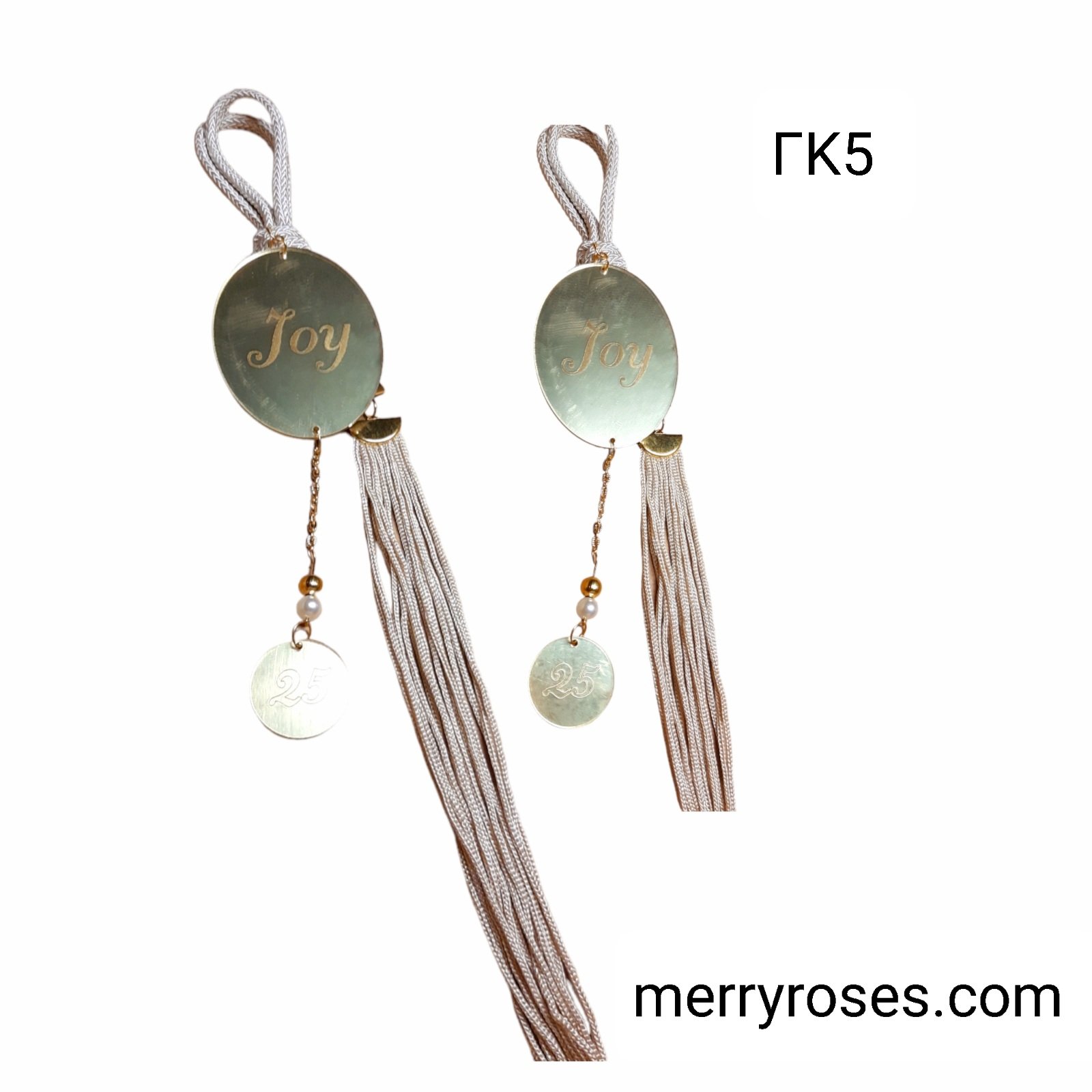 Κρεμαστό γούρι Joy 2025 (χρυσό plexi),με φούντα μπεζ και κόσμημα.