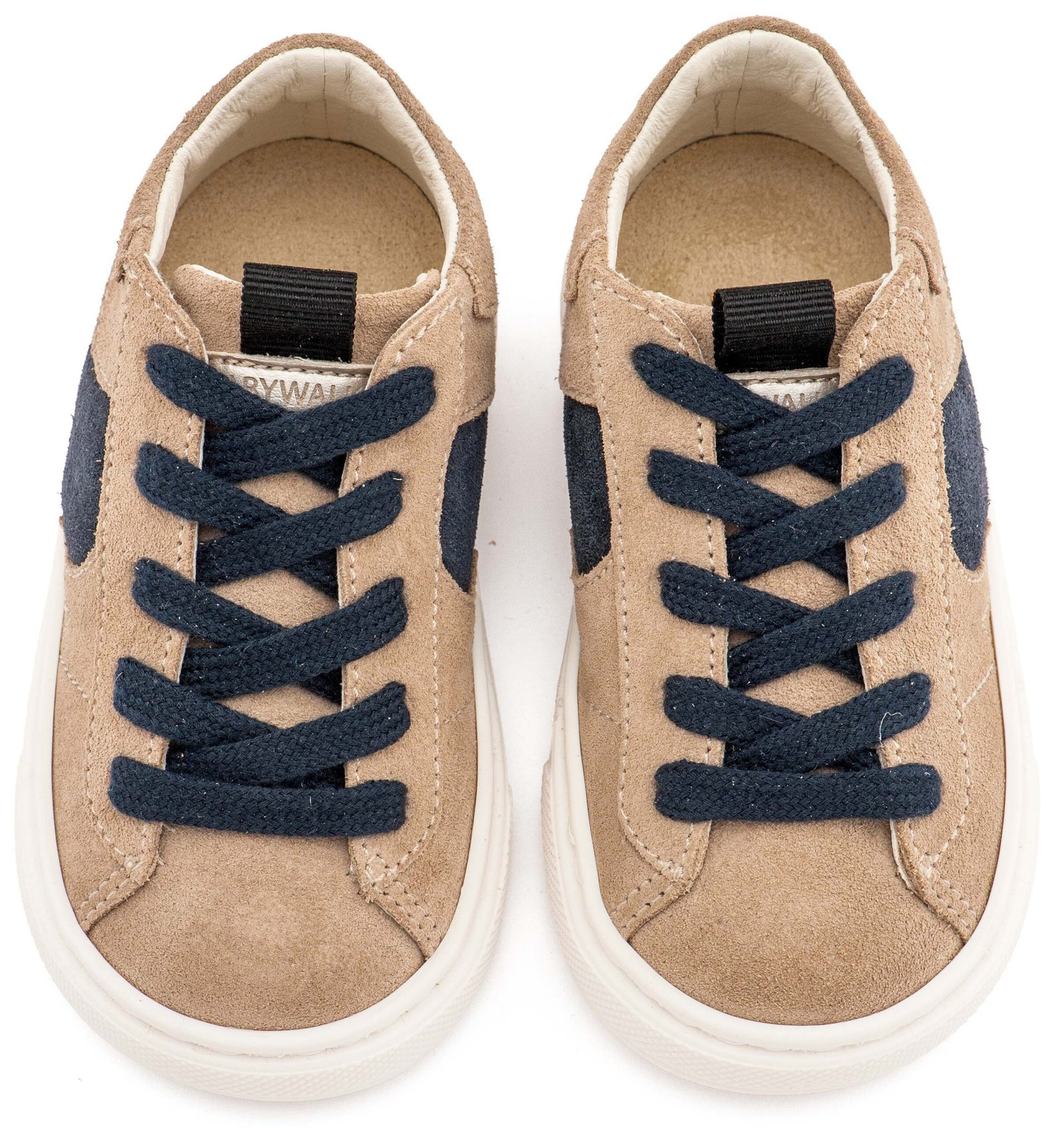 Δερμάτινο Δίχρωμο Sneaker Δετό σε Μπεζ Μπλε Χρώμα