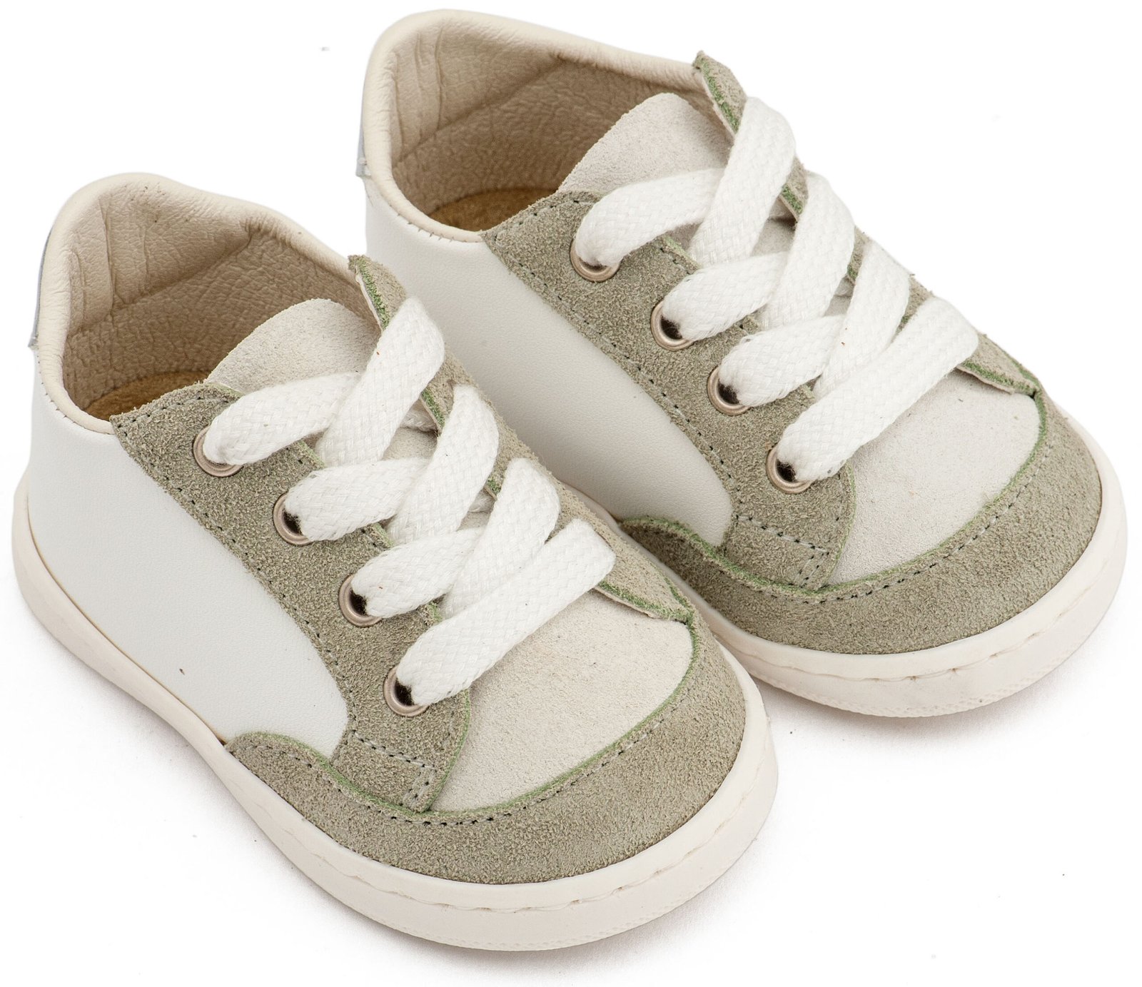Δίχρωμο Δερμάτινο Δετό Sneakers σε Λευκό Μέντα