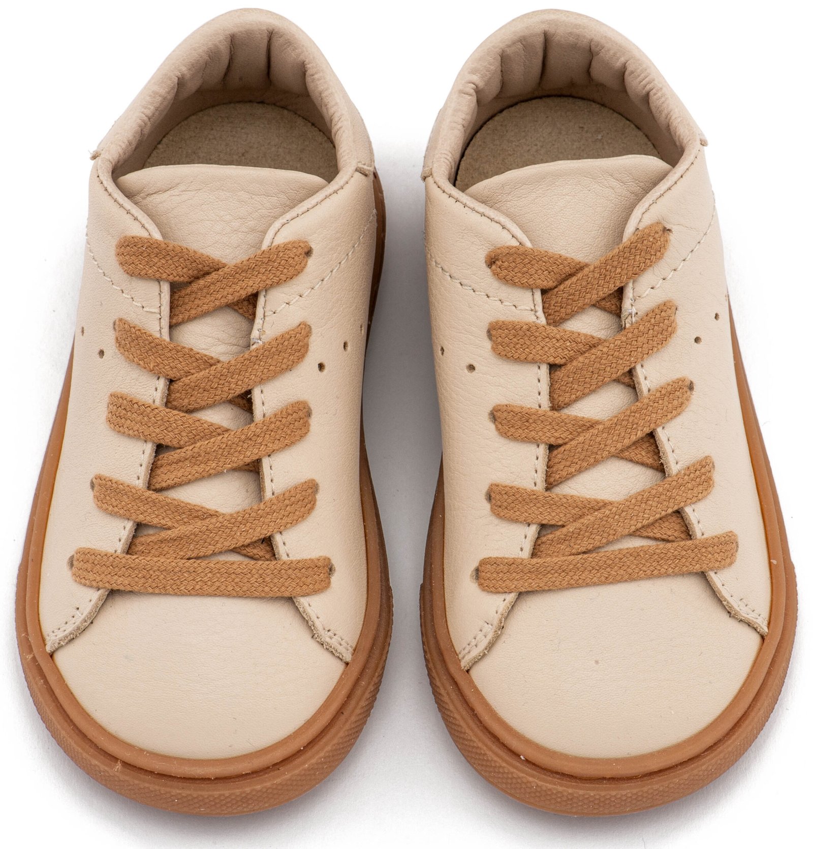 Δετό Δερμάτινο Sneaker από Δέρμα Νάπα σε Μπεζ