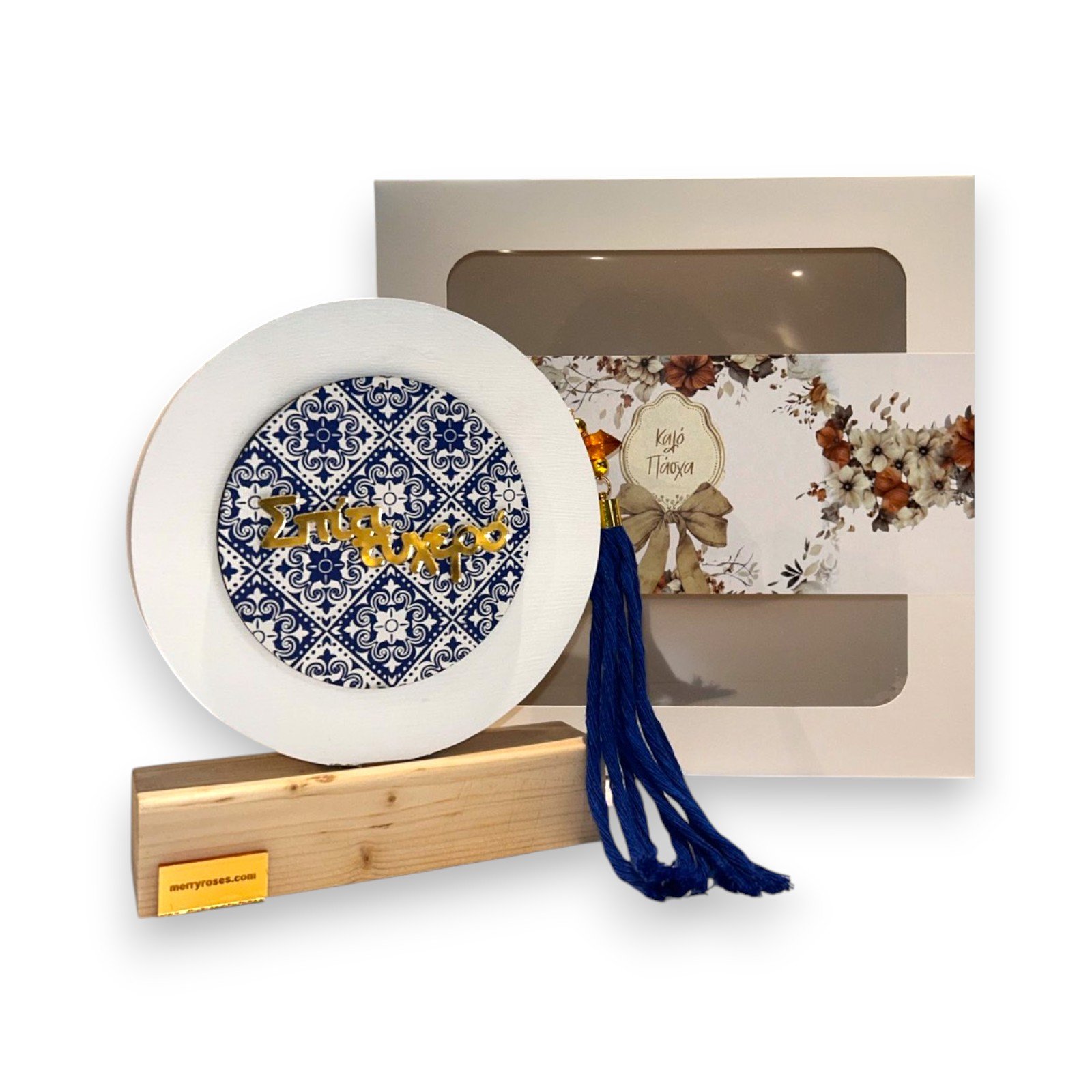 – Συσκευασία: Κουτί δώρου με floral σχέδιο, παράθυρα προβολής και επιγραφή “Καλό Πάσχα”