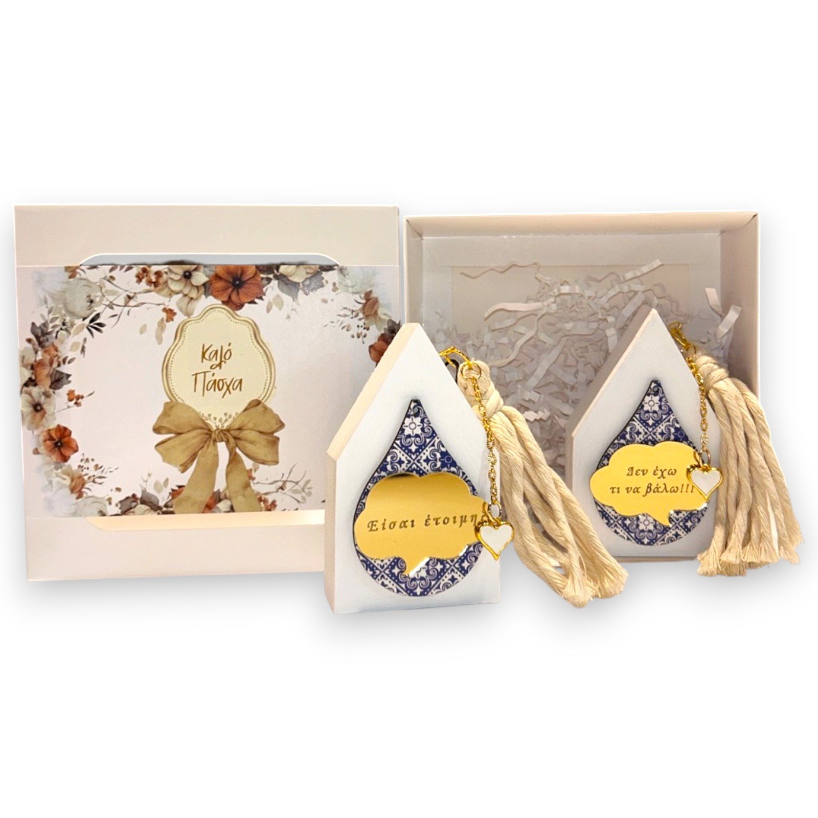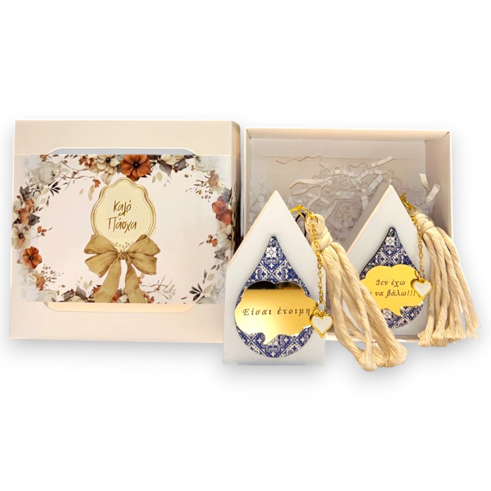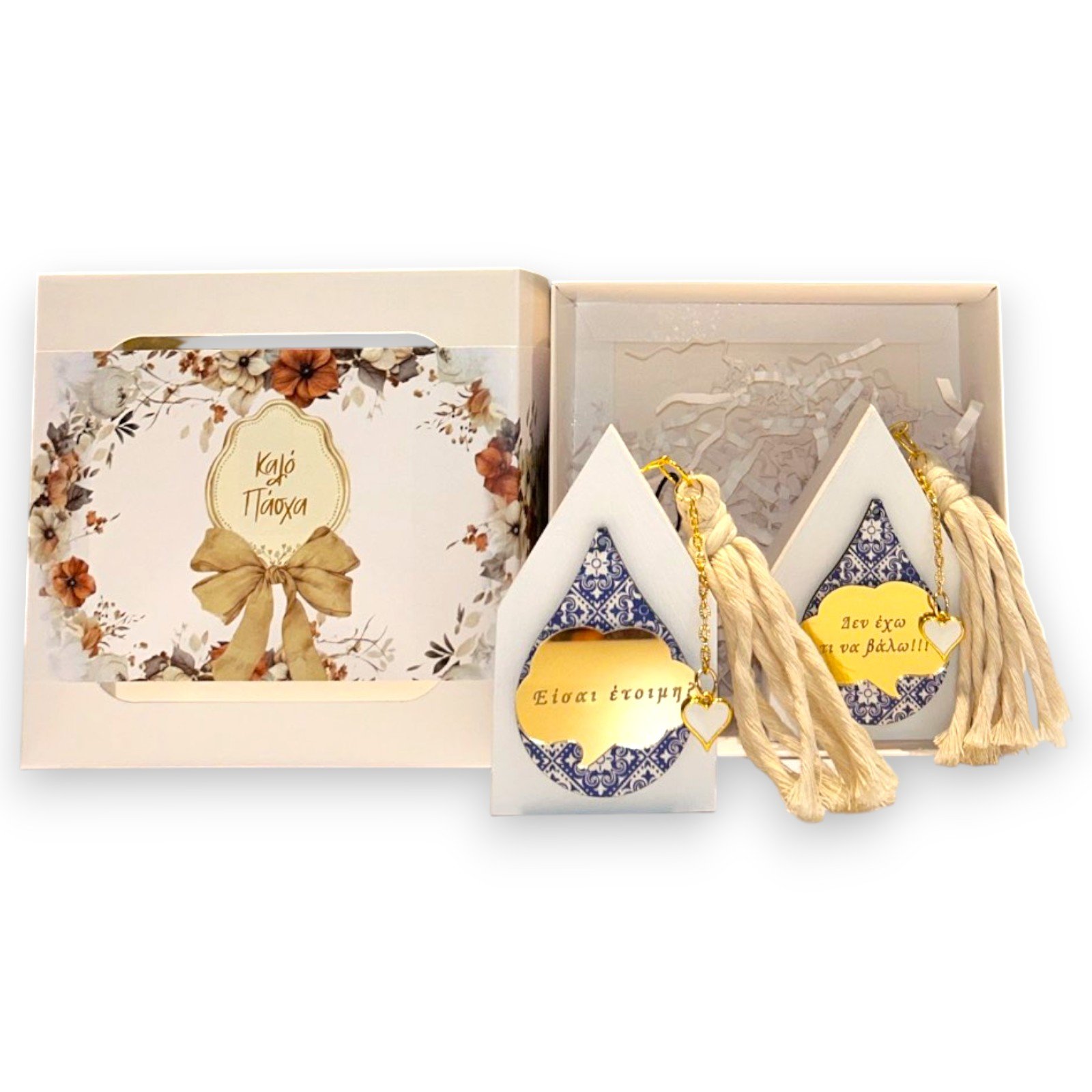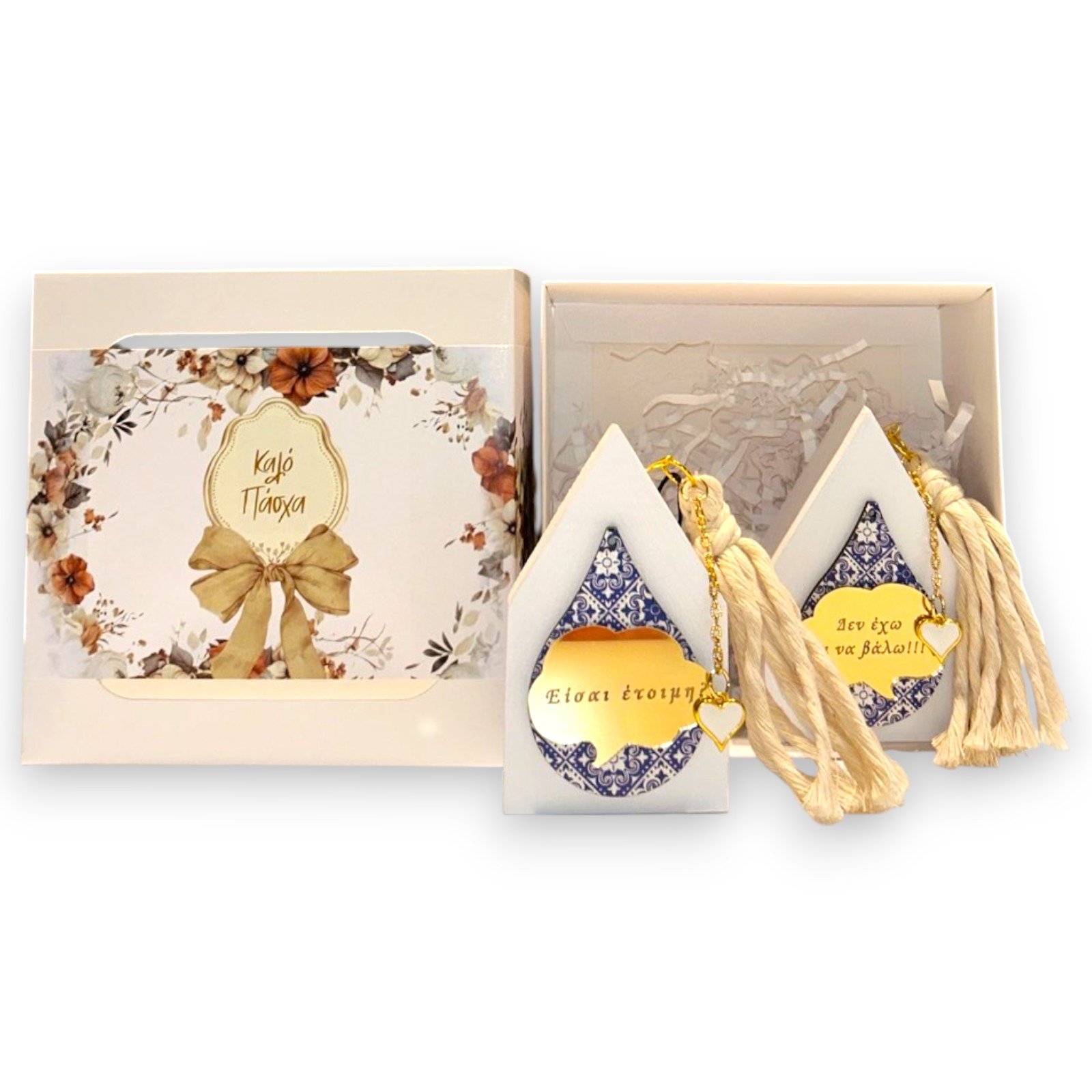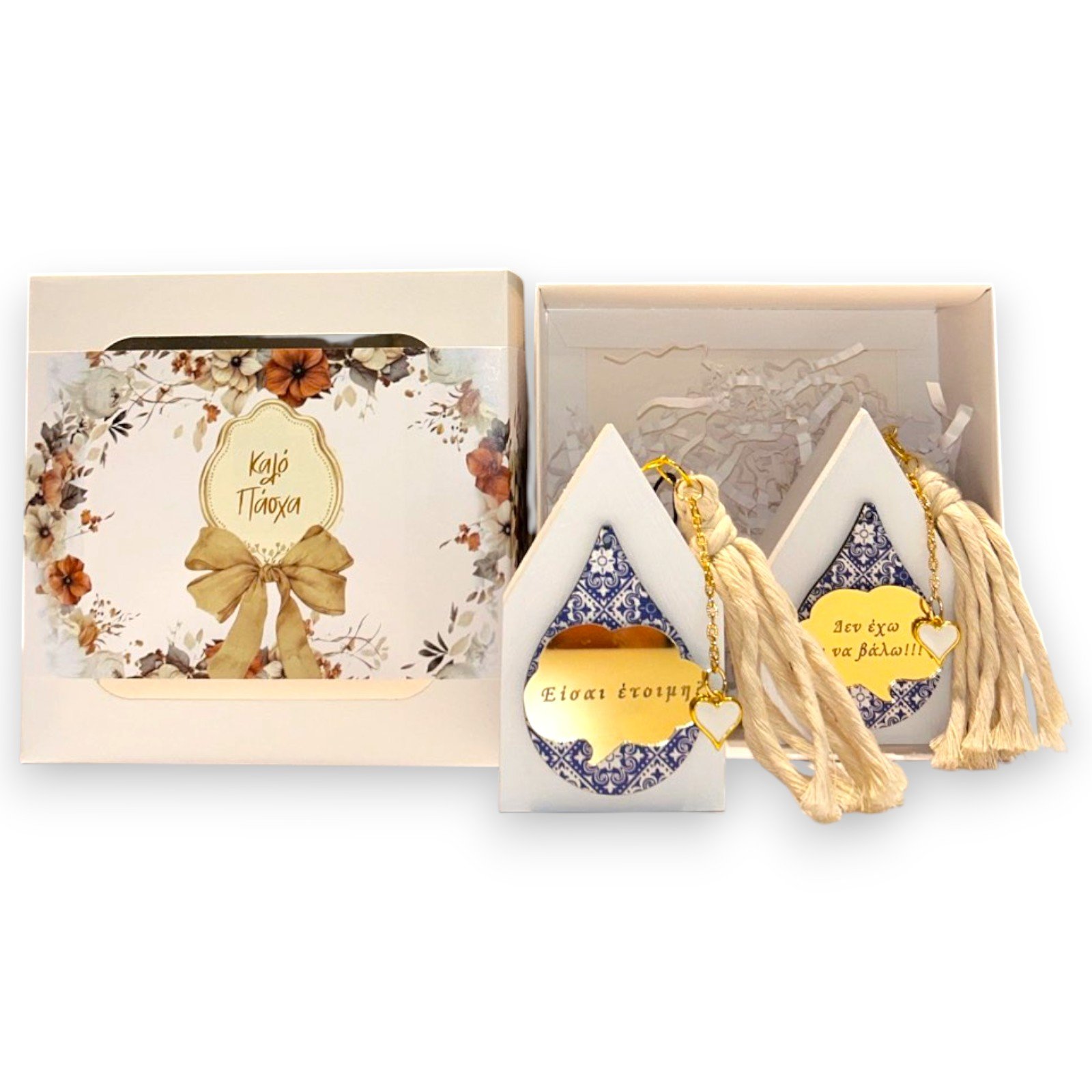 Συσκευασία: Κουτί δώρου με floral σχέδιο, παράθυρα προβολής και επιγραφή “Καλό Πάσχα”