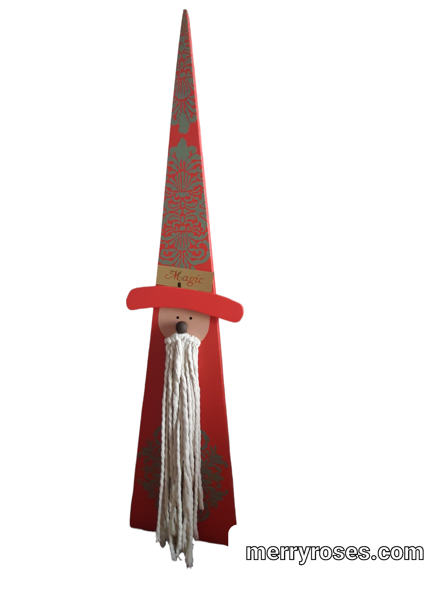 Χριστουγεννιάτικος κόκκινος νάνος με σχέδια και χρυσό plexi ευχή magic.