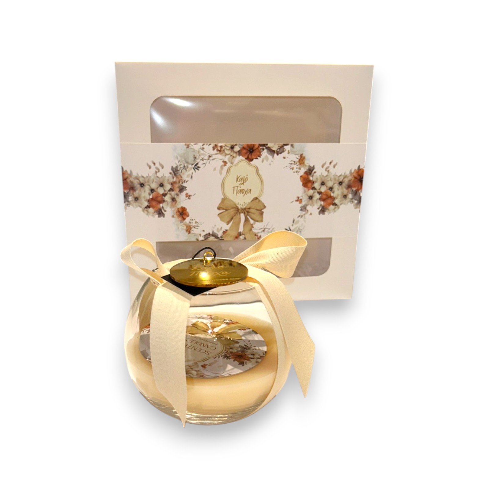 Κομψό αρωματικό κερί σε στρογγυλό γυάλινο βάζο τύπου bubble, ιδανικό για δώρο και εποχιακές συλλογές. Ο minimal σχεδιασμός, σε συνδυασμό με τη διακριτική κορδέλα, το καθιστά κατάλληλο για καταστήματα δώρων, concept stores και premium πασχαλινές προτάσεις.