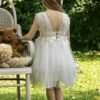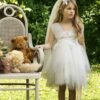 Ένα ξεχωριστό φόρεμα σε off white απόχρωση , τούλινη ασύμμετρη φούστα που δίνει ένα υπέροχο αποτέλεσμα . ιδιαίτερο μπούστο με κεντημένες πέρλες σχηματίζοντας ένα βαθύ V μπροστά αλλά και στο πίσω μέρος του φορέματος. Ανάγλυφα λουλούδια με λεπτομέρειες λάμψης στολίζουν τη μέση του φορέματος .Η εσωτερική επένδυση του φορέματος αποτελείται από μαλακό βαμβακερό ύφασμα.