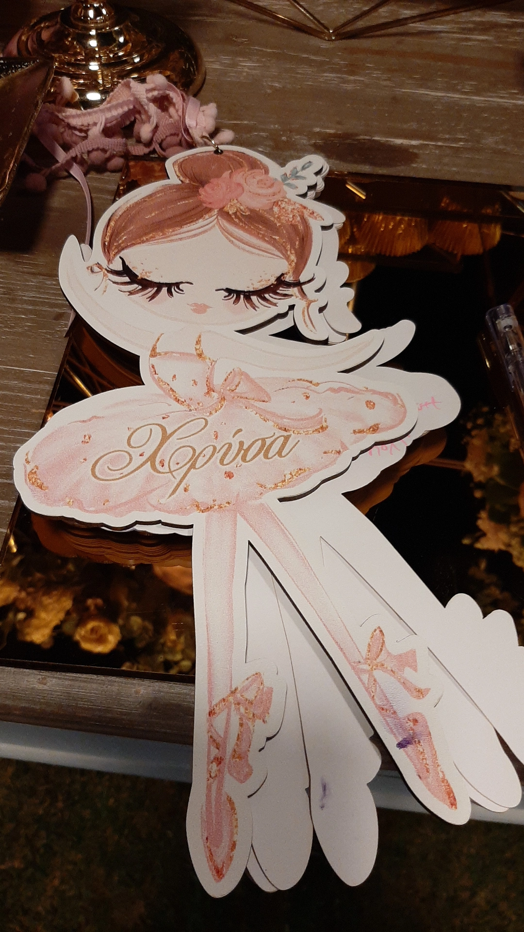 Ξύλινο ευχολόγιο βάπτισης μπαλαρίνα με το όνομα του παιδιού